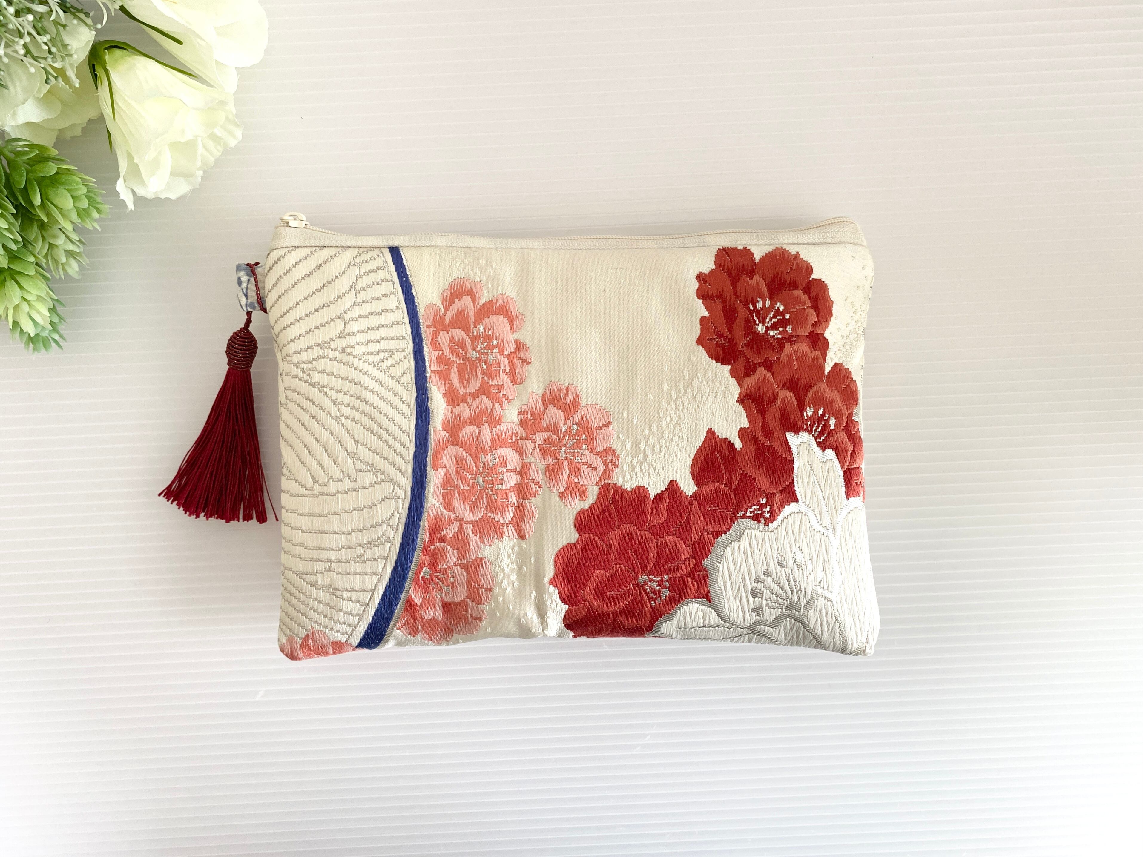 日本の古帯をリメイクして作製したポーチでハンドメイド品です。