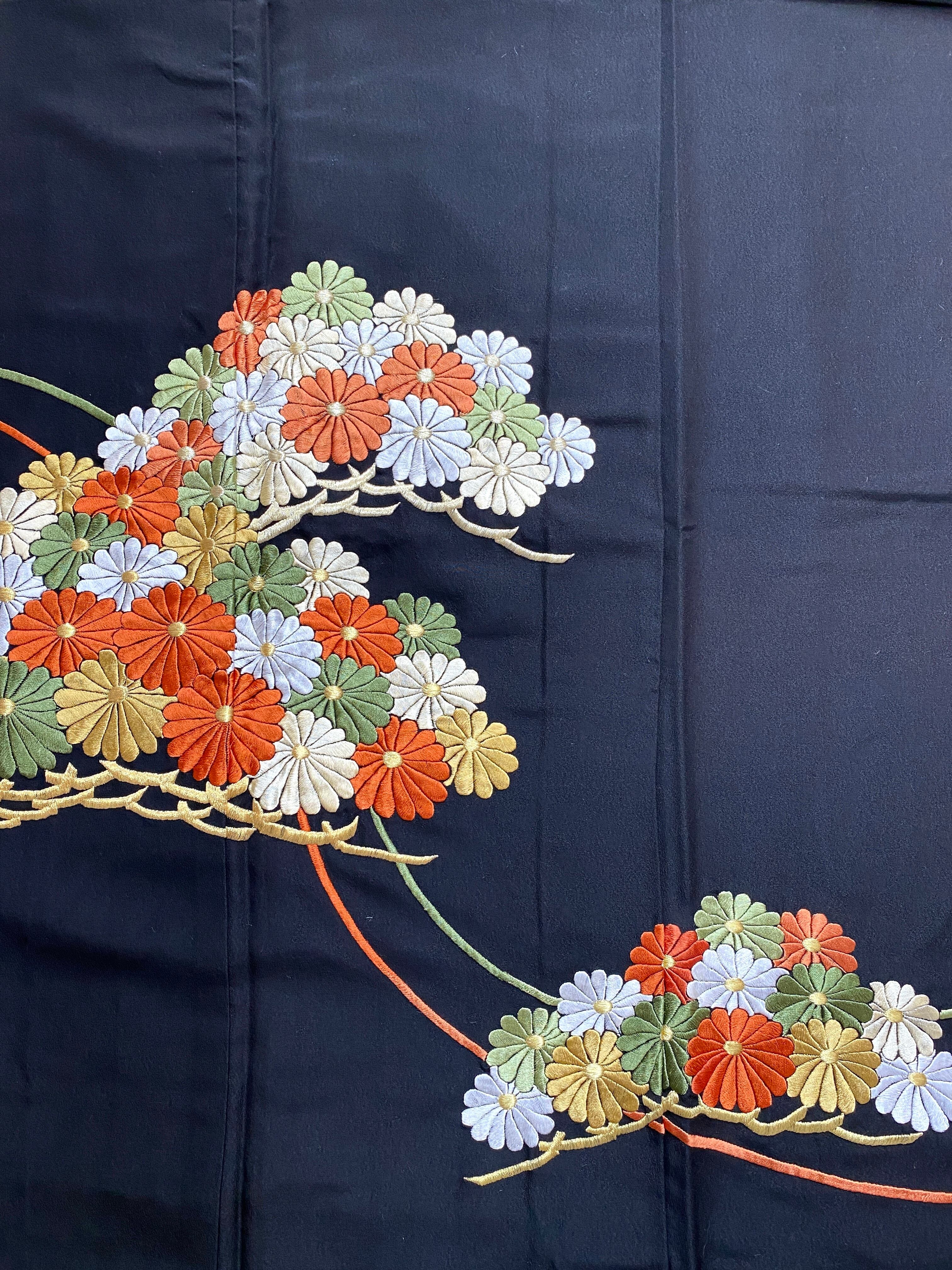 黒留袖着物リメイクウエストゴムロングスカートフリーサイズ
