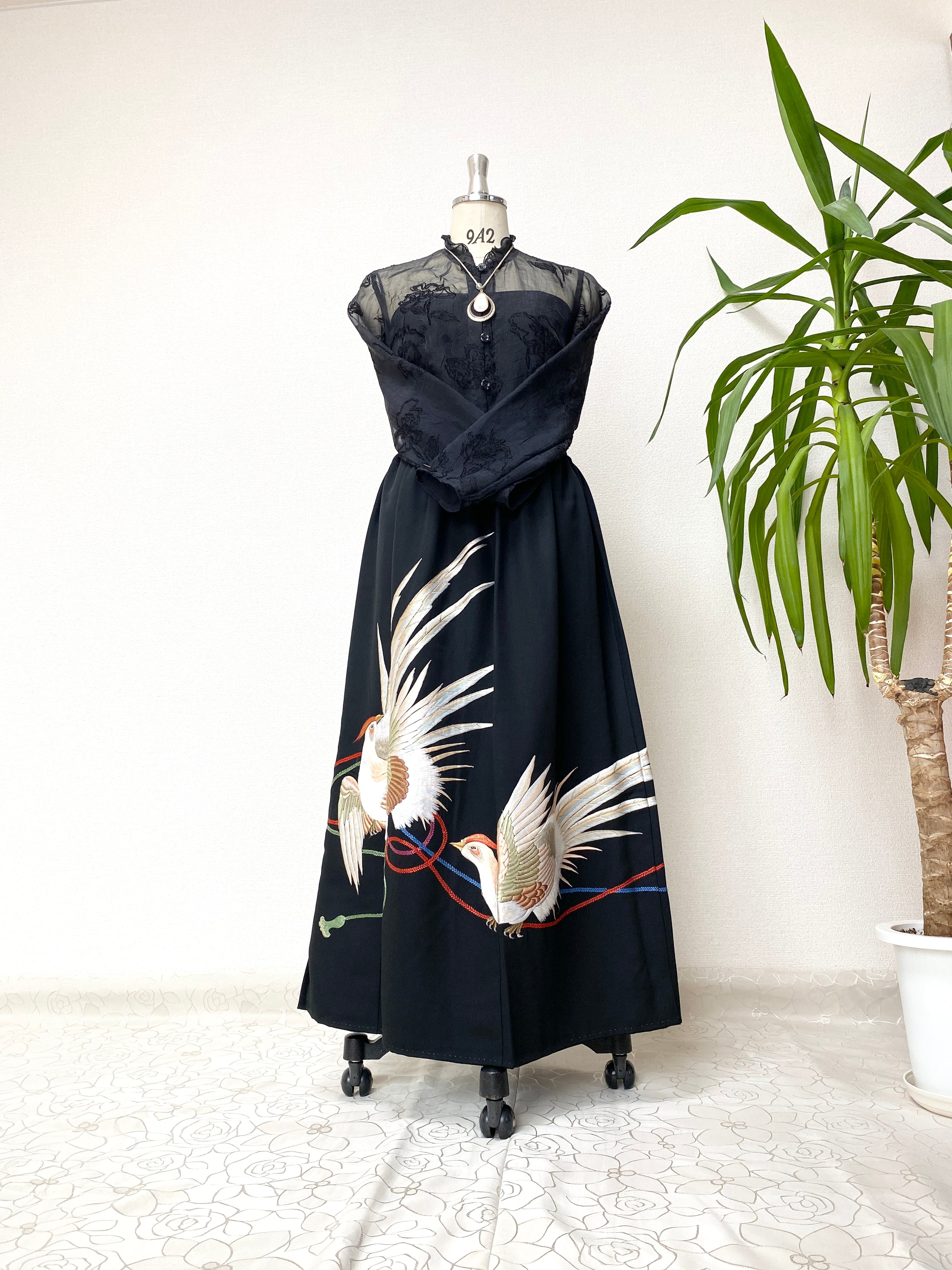 黒留袖着物リメイクウエストゴムロングスカートフリーサイズ