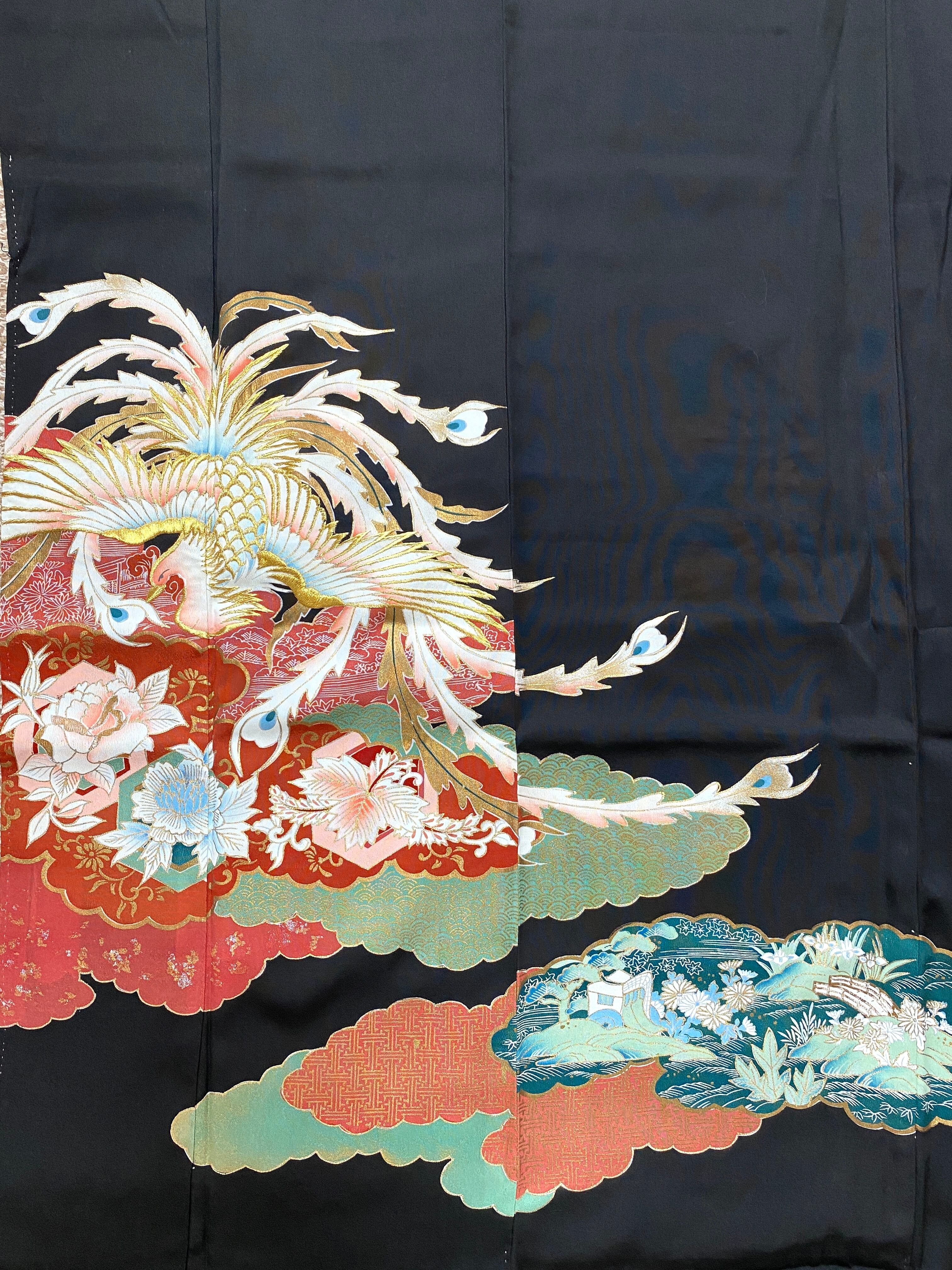 黒留袖着物リメイクウエストゴムロングスカート【超ロング丈】フリーサイズ送料無料ハンドメイド黒留袖着物リメイクウエストゴムロングスカート【超ロング丈】フリーサイズ送料無料ハンドメイドNO.1686