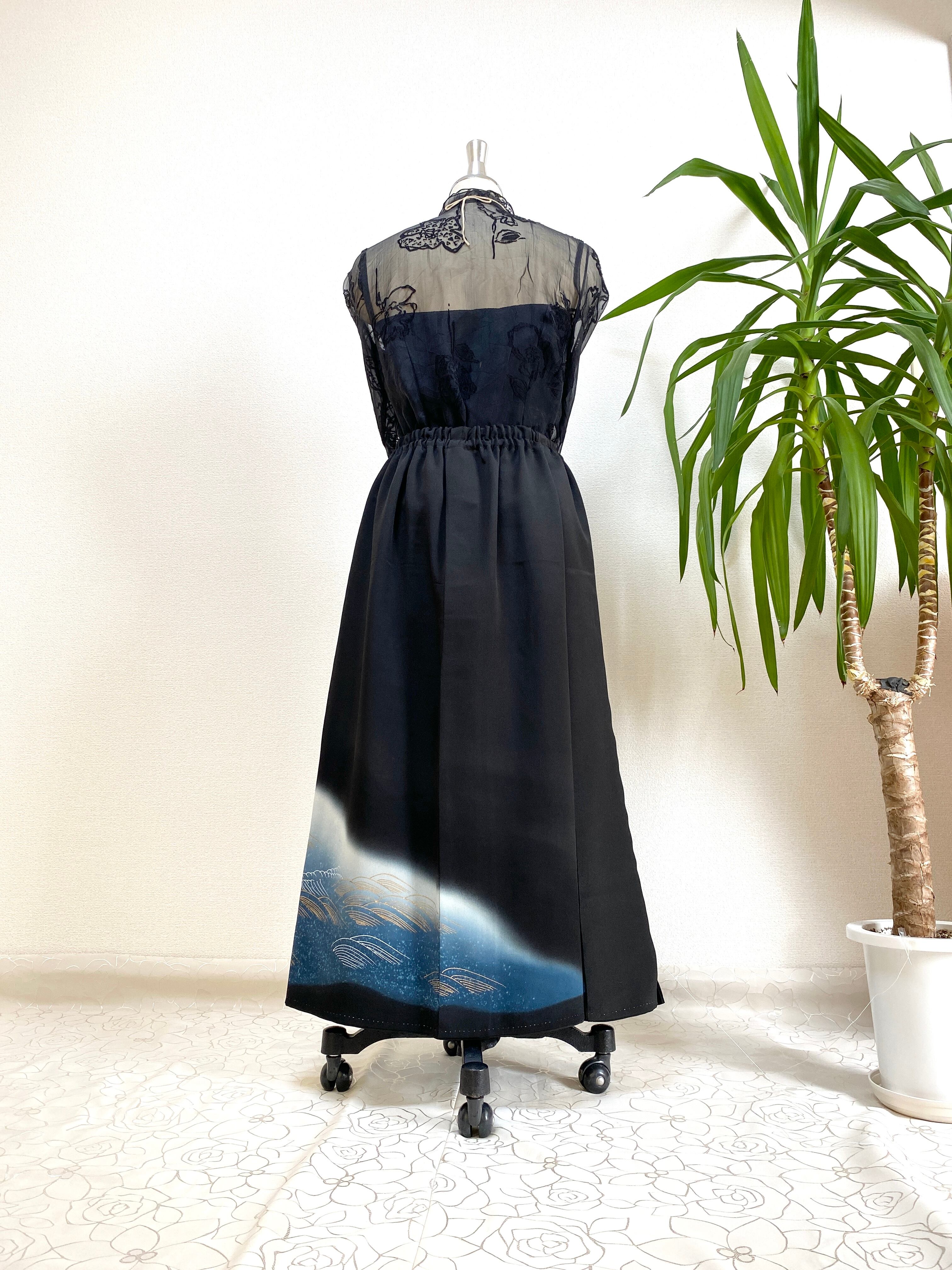 黒留袖着物リメイクウエストゴムロングスカートフリーサイズ