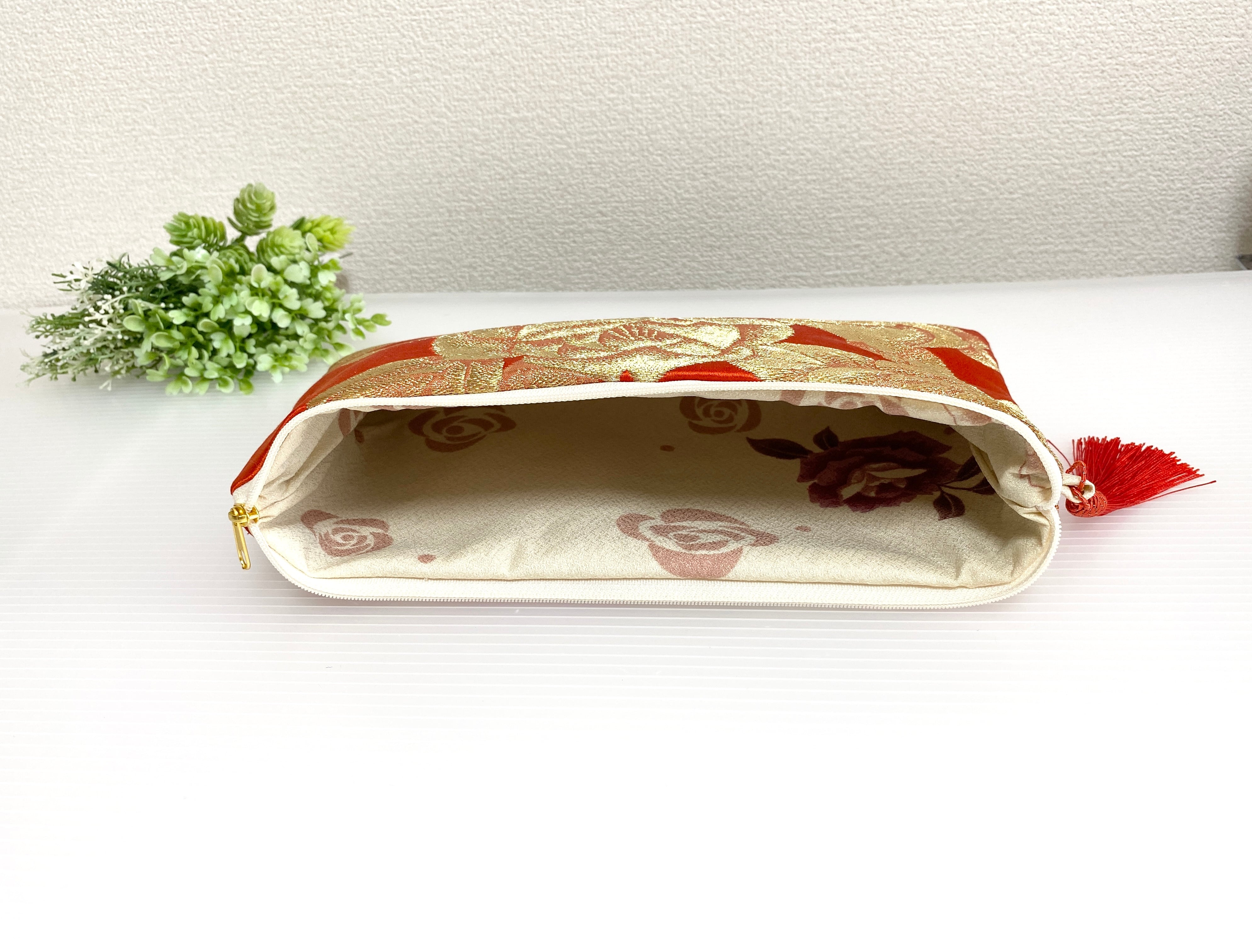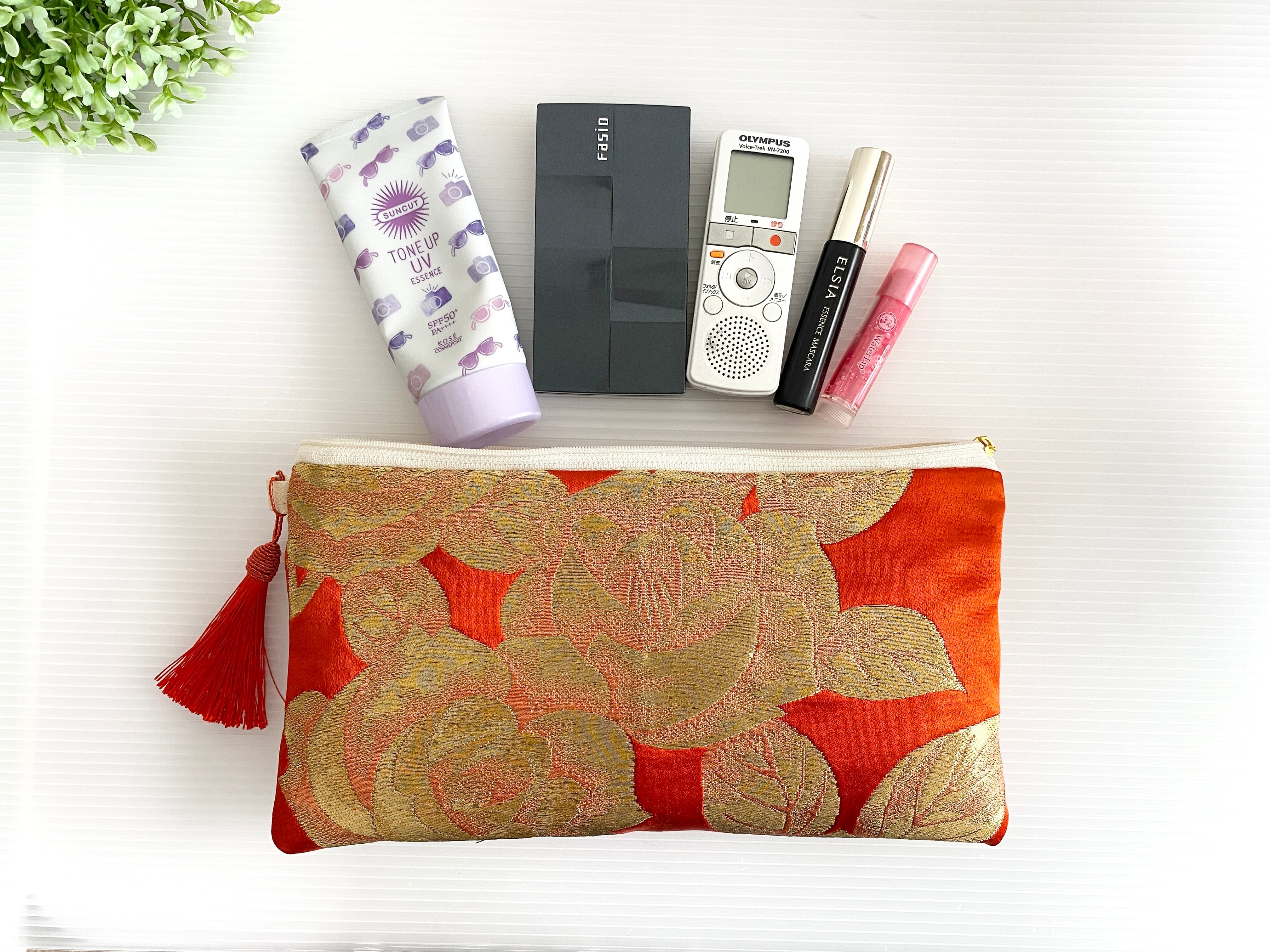 帯リメイクポーチ【大きめマチ無し】化粧ポーチ パスポート入れ 通帳入れ お薬手帳入れ 数珠入れ 御朱印帳入れ マルチケース コスメポーチ マルチポーチ