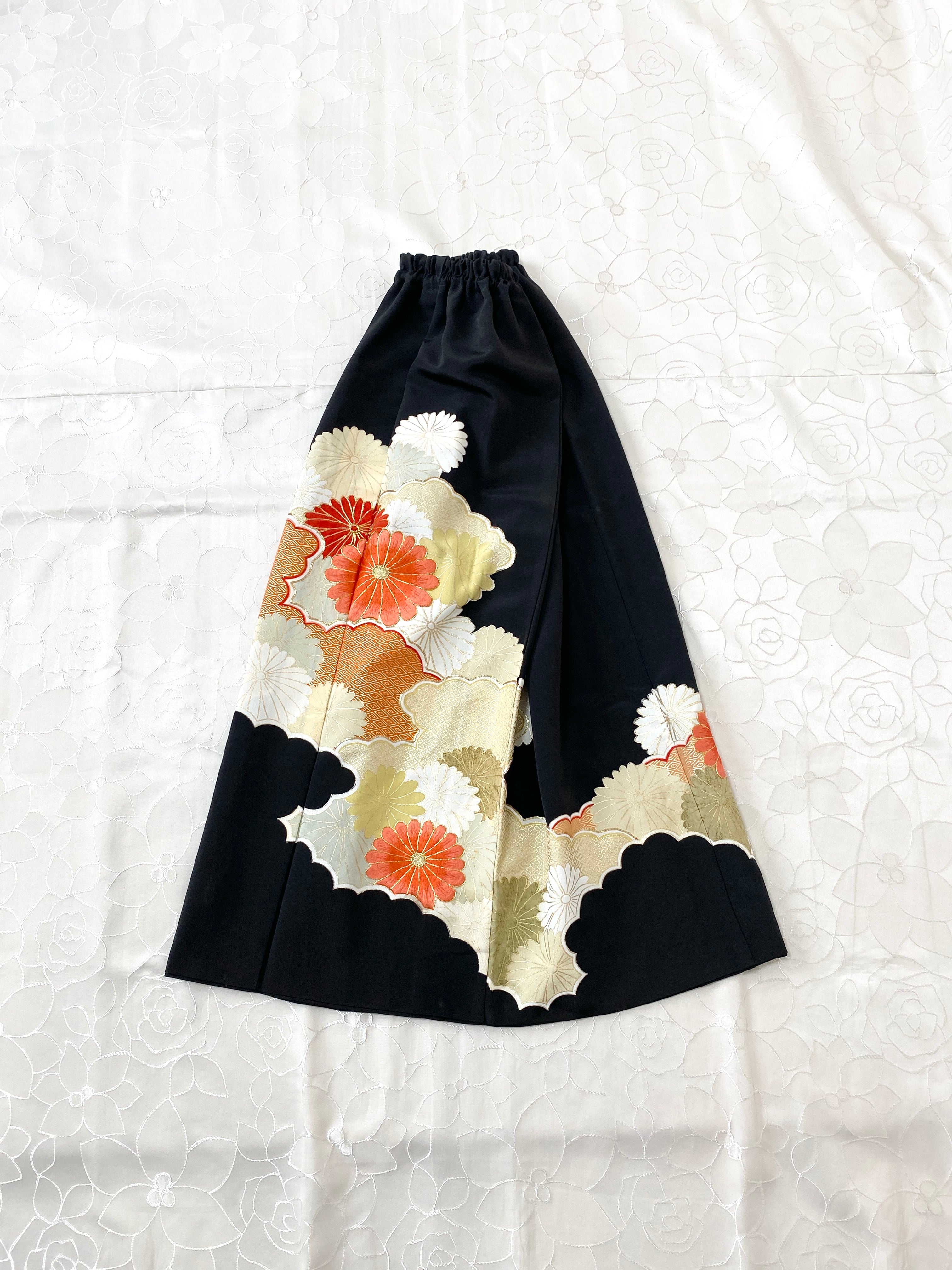 黒留袖着物リメイクウエストゴムロングスカートフリーサイズ