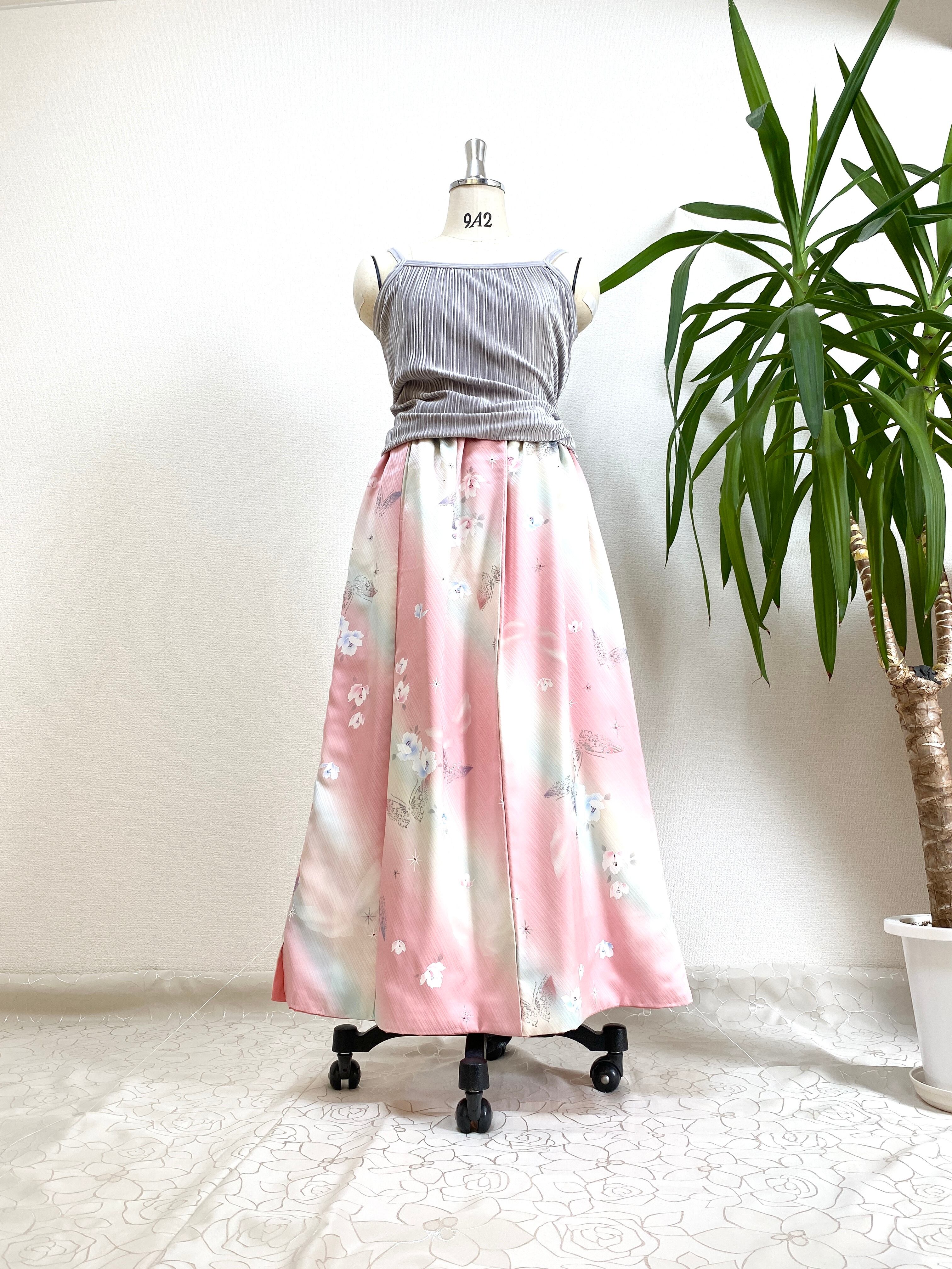 着物リメイクウエストゴムロングスカートフリーサイズ