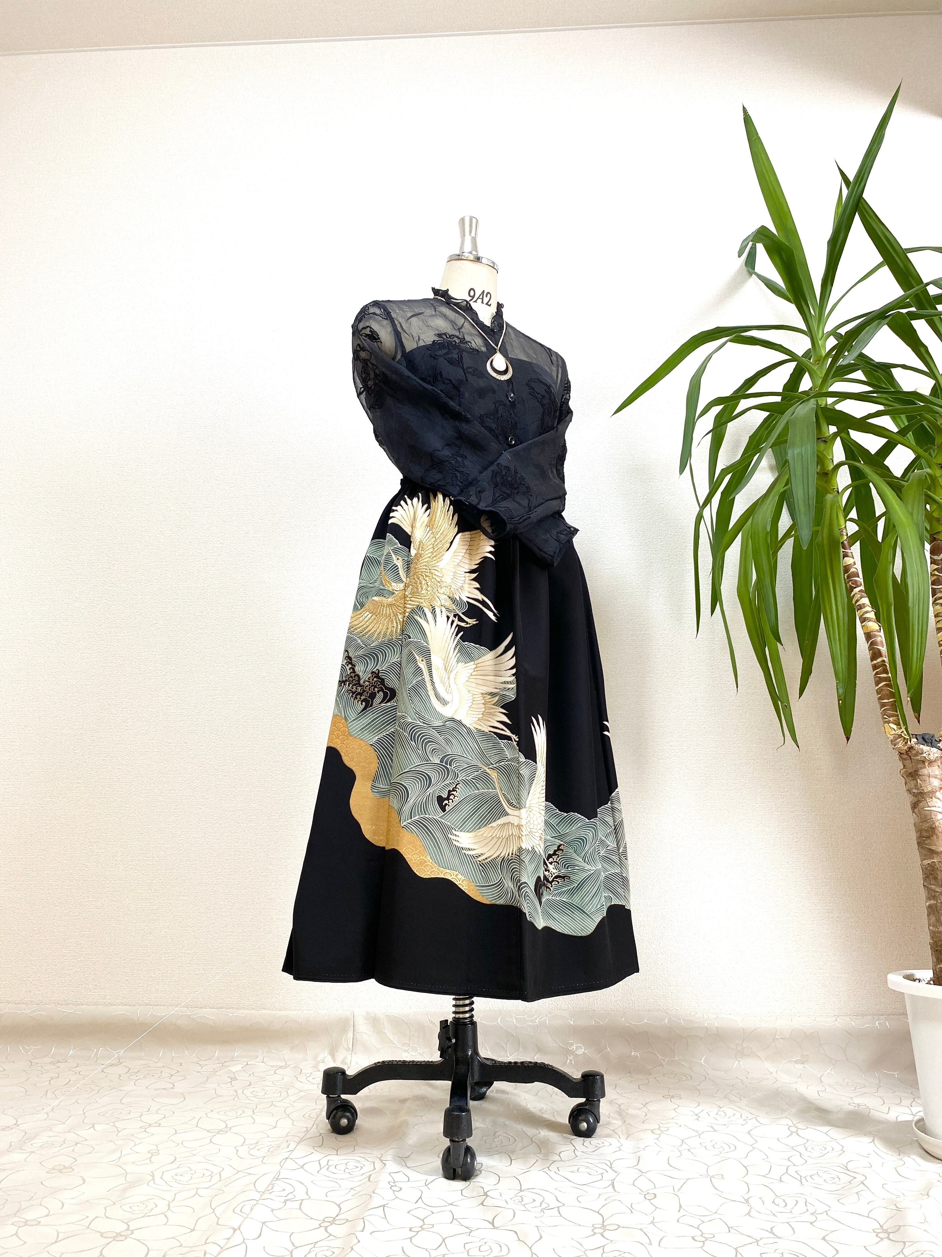 黒留袖着物リメイクウエストゴムロングドレススカートフリーサイズ【おチビさん用】