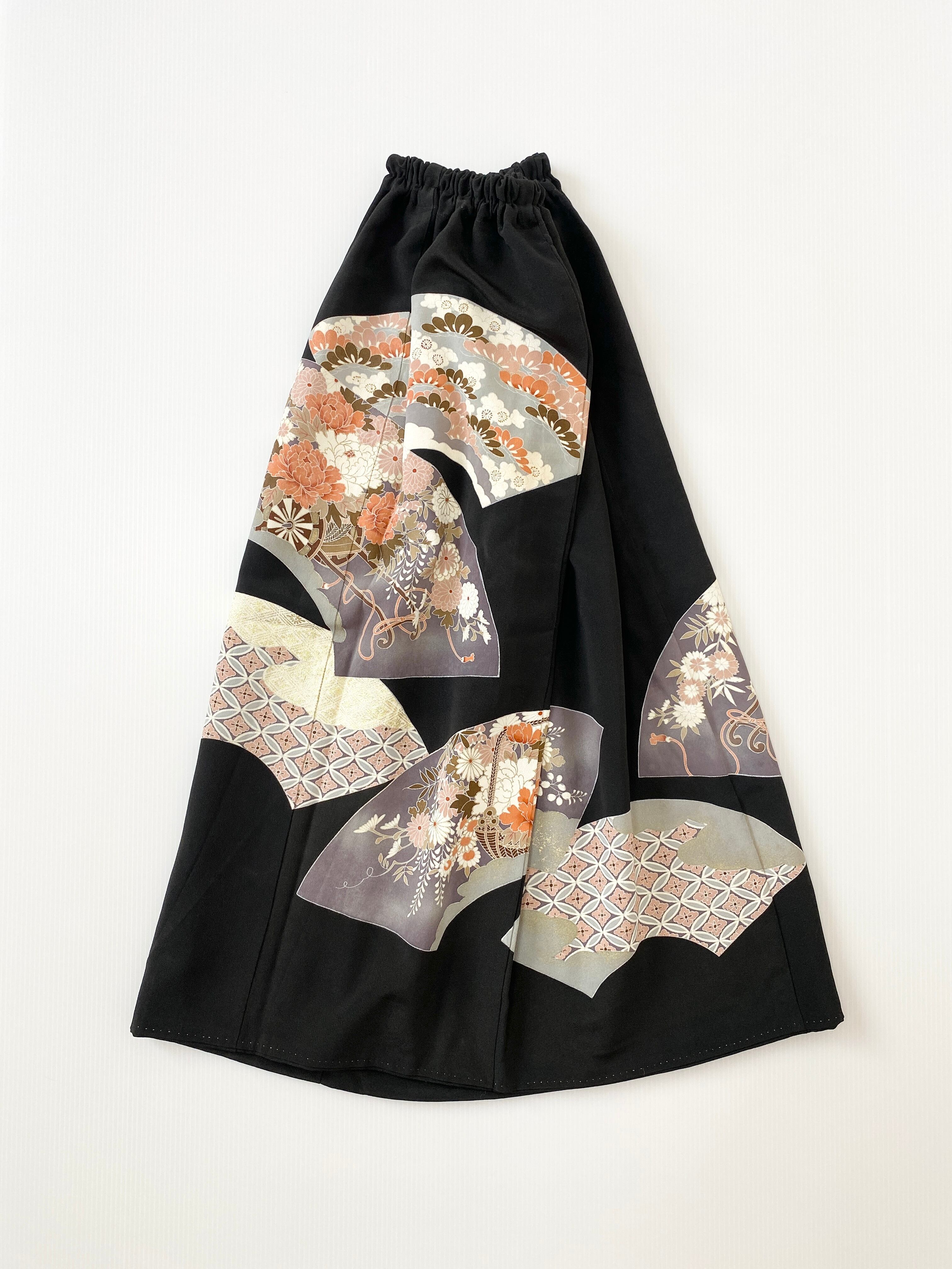 黒留袖着物リメイクウエストゴムロングスカートフリーサイズ