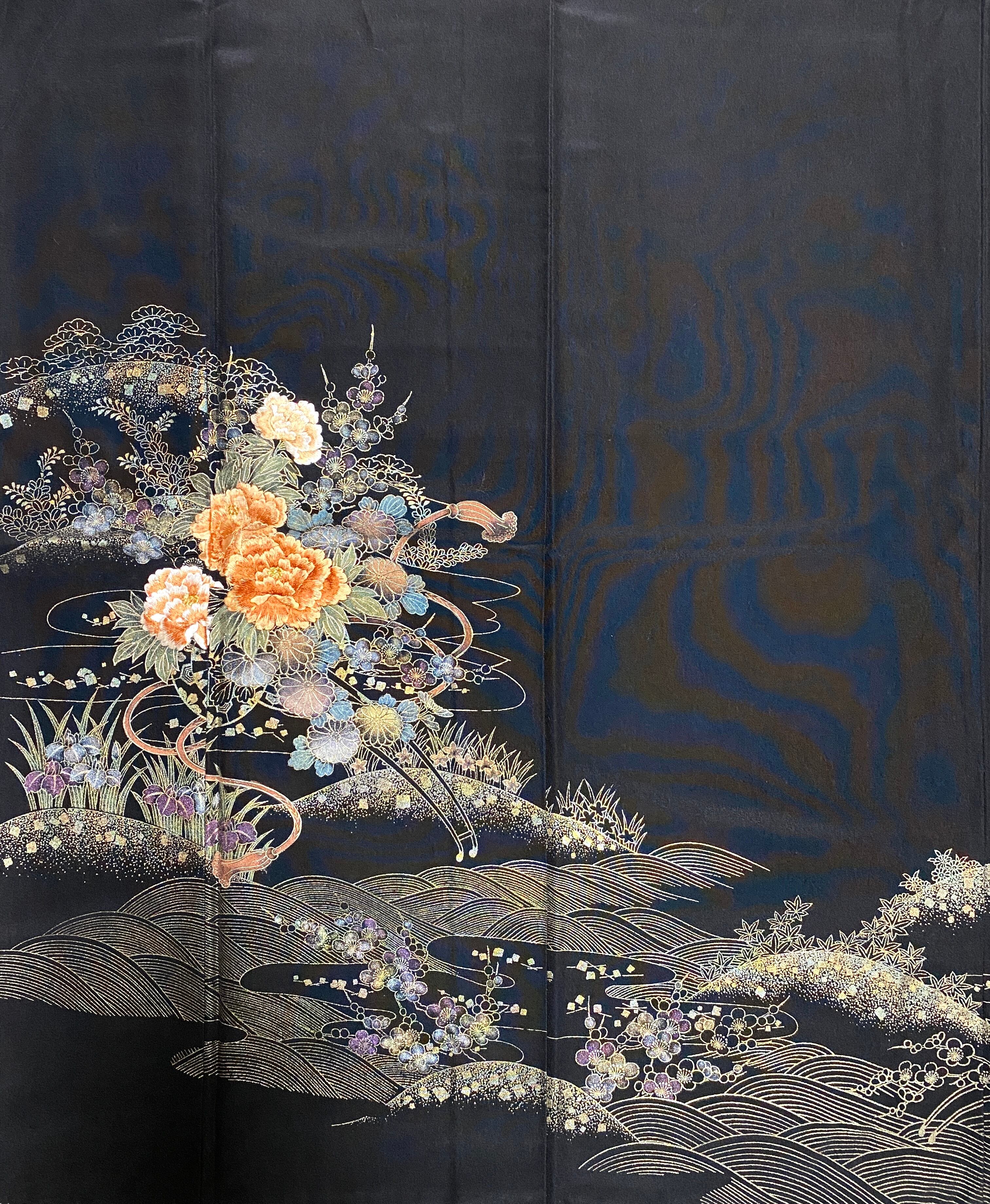 黒留袖着物リメイクウエストゴムロングスカート送料無料フリーサイズ1点物黒留袖着物リメイクウエストゴムロングスカートフリーサイズ黒留袖着物リメイクロングスカートNO.1756