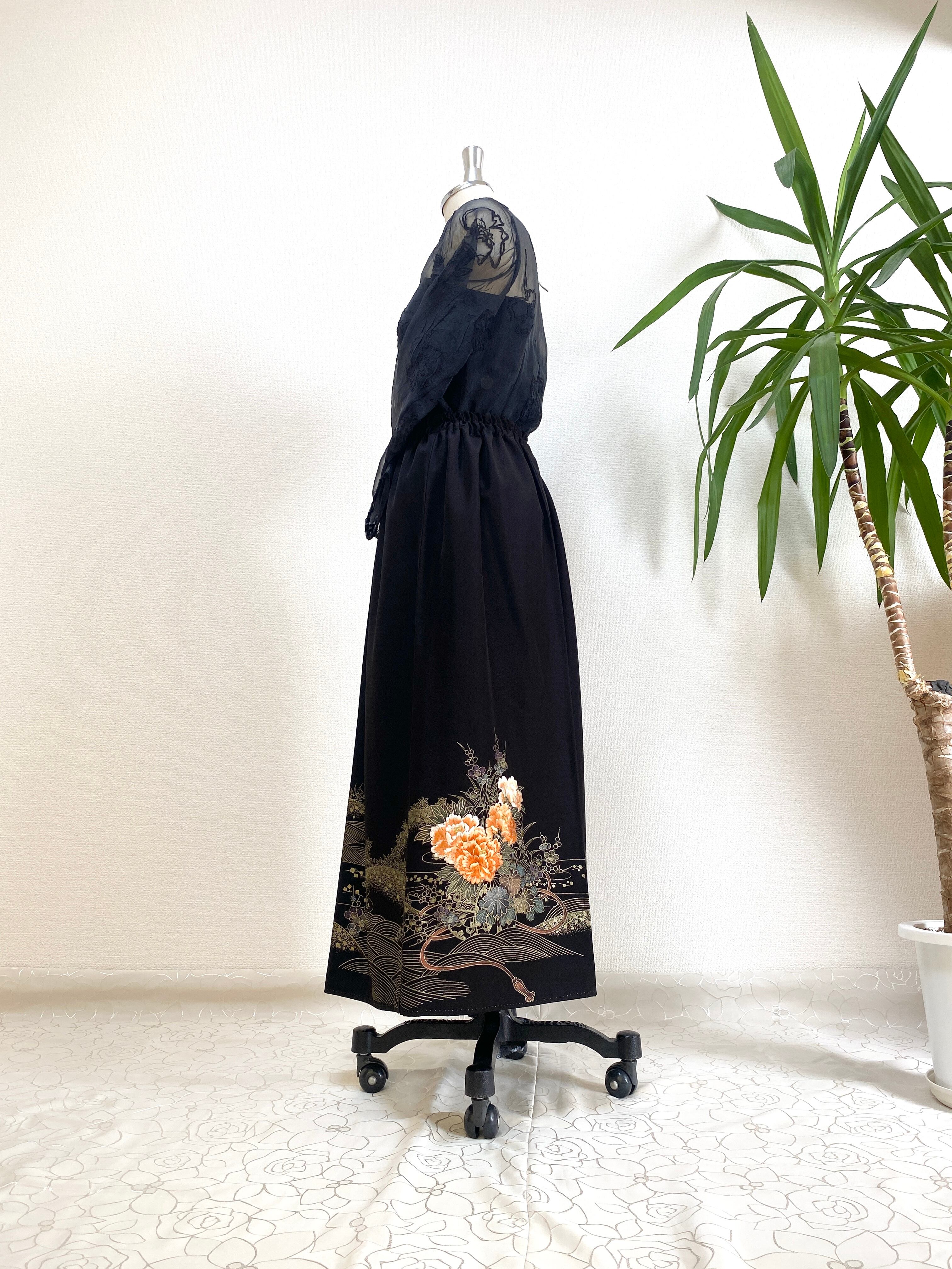 黒留袖着物リメイクウエストゴムロングスカートフリーサイズ