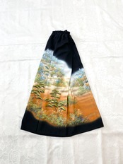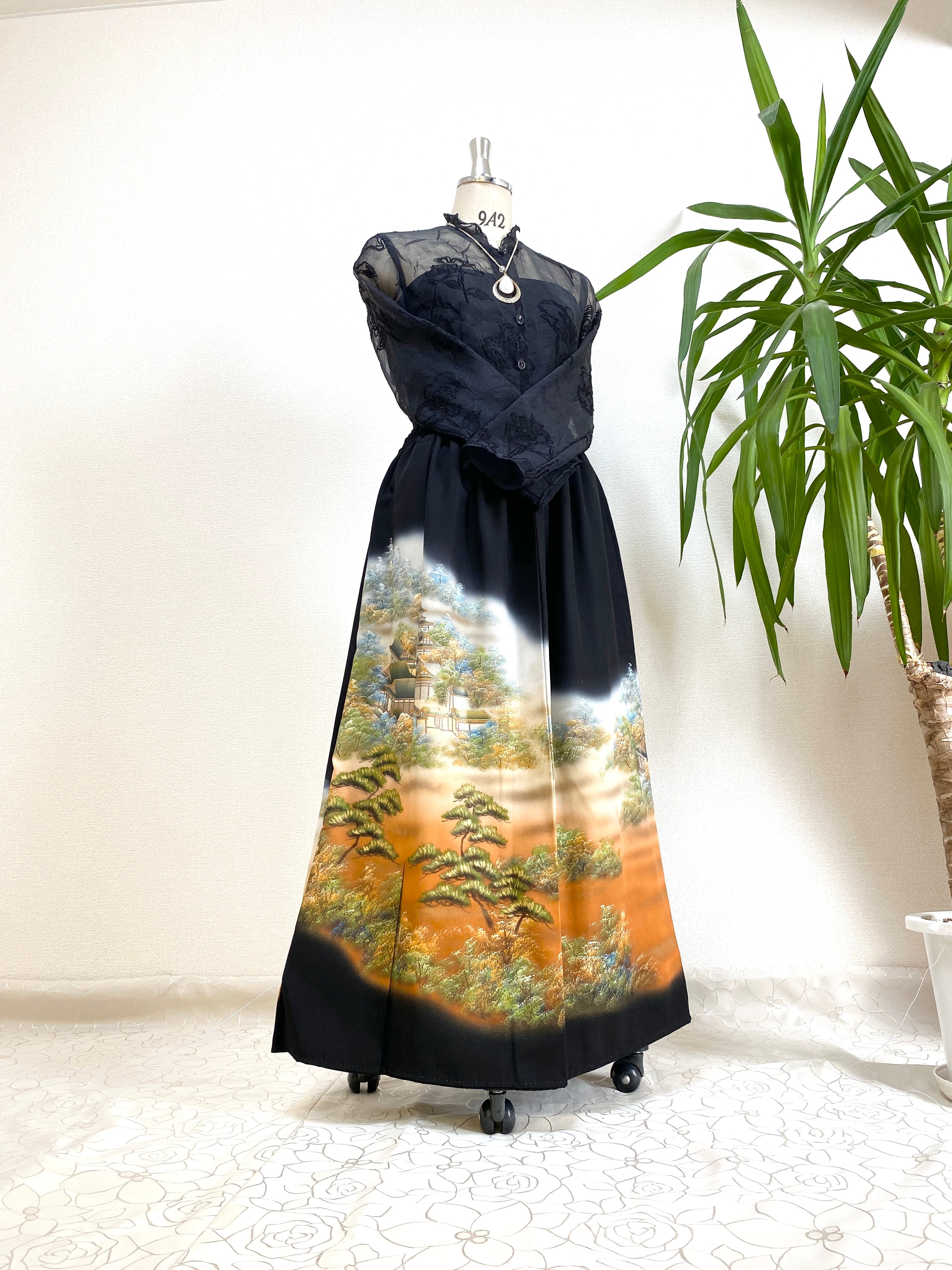 黒留袖着物をリメイクして作製したウエストゴムロングドレススカートフリーサイズ【超ロング丈】です。