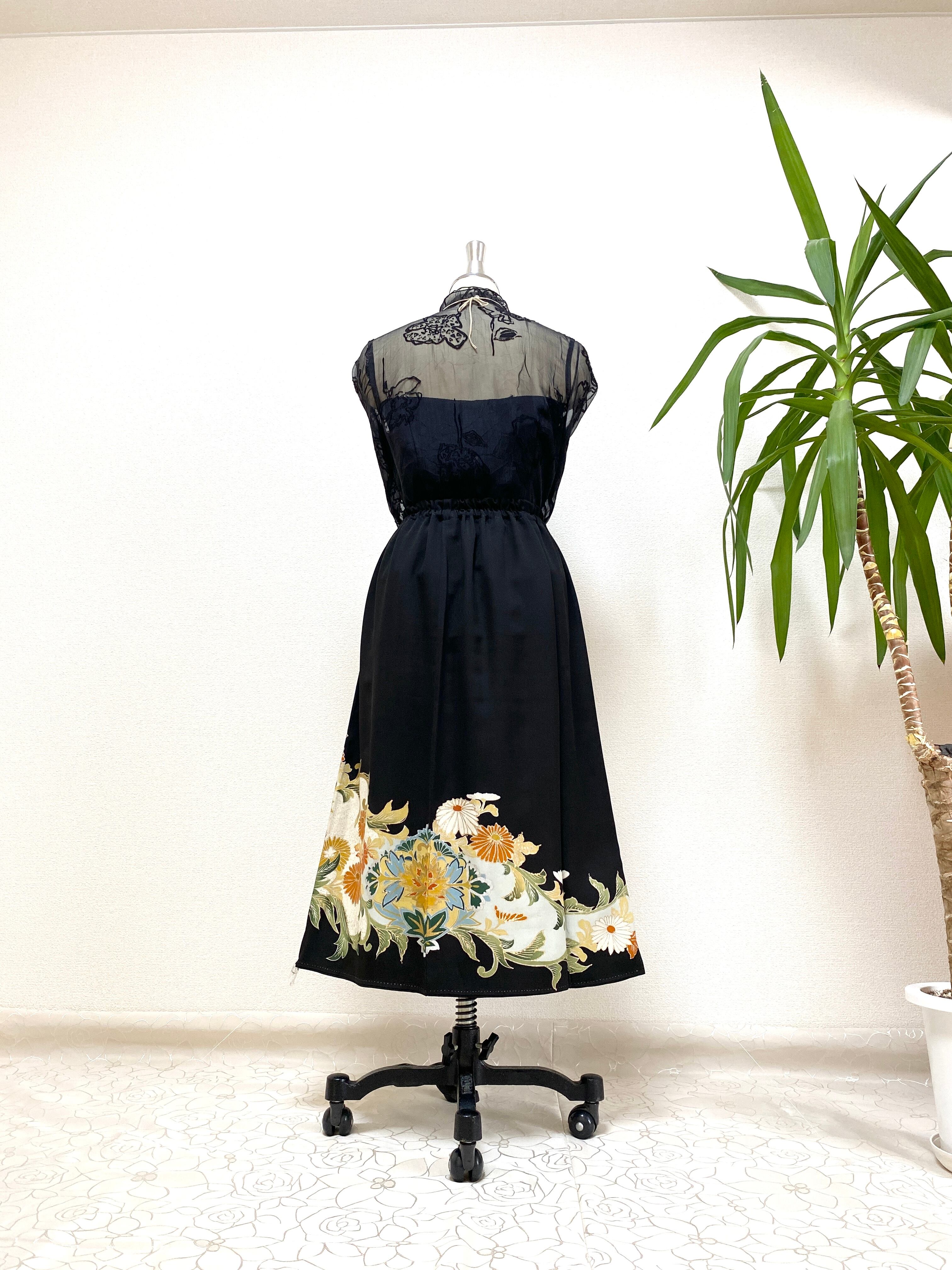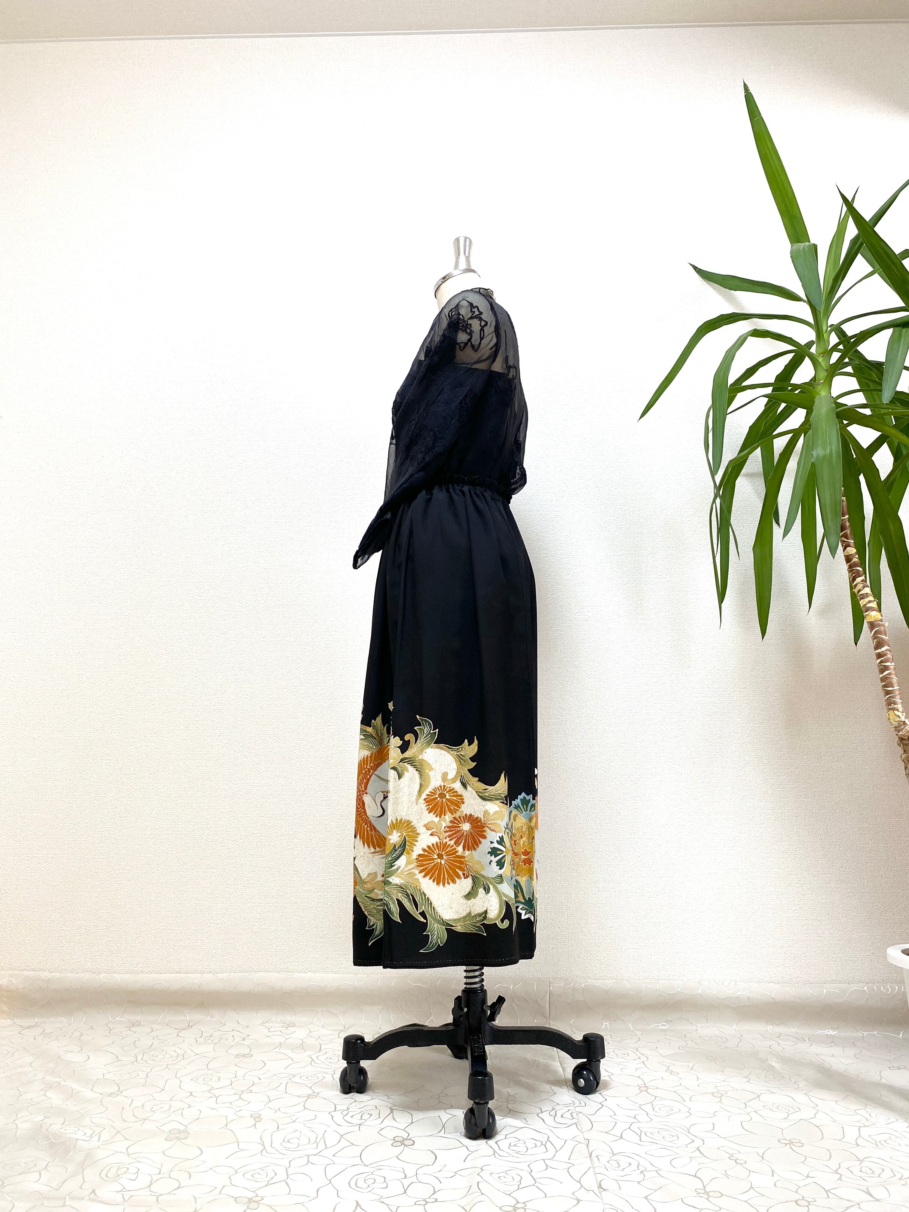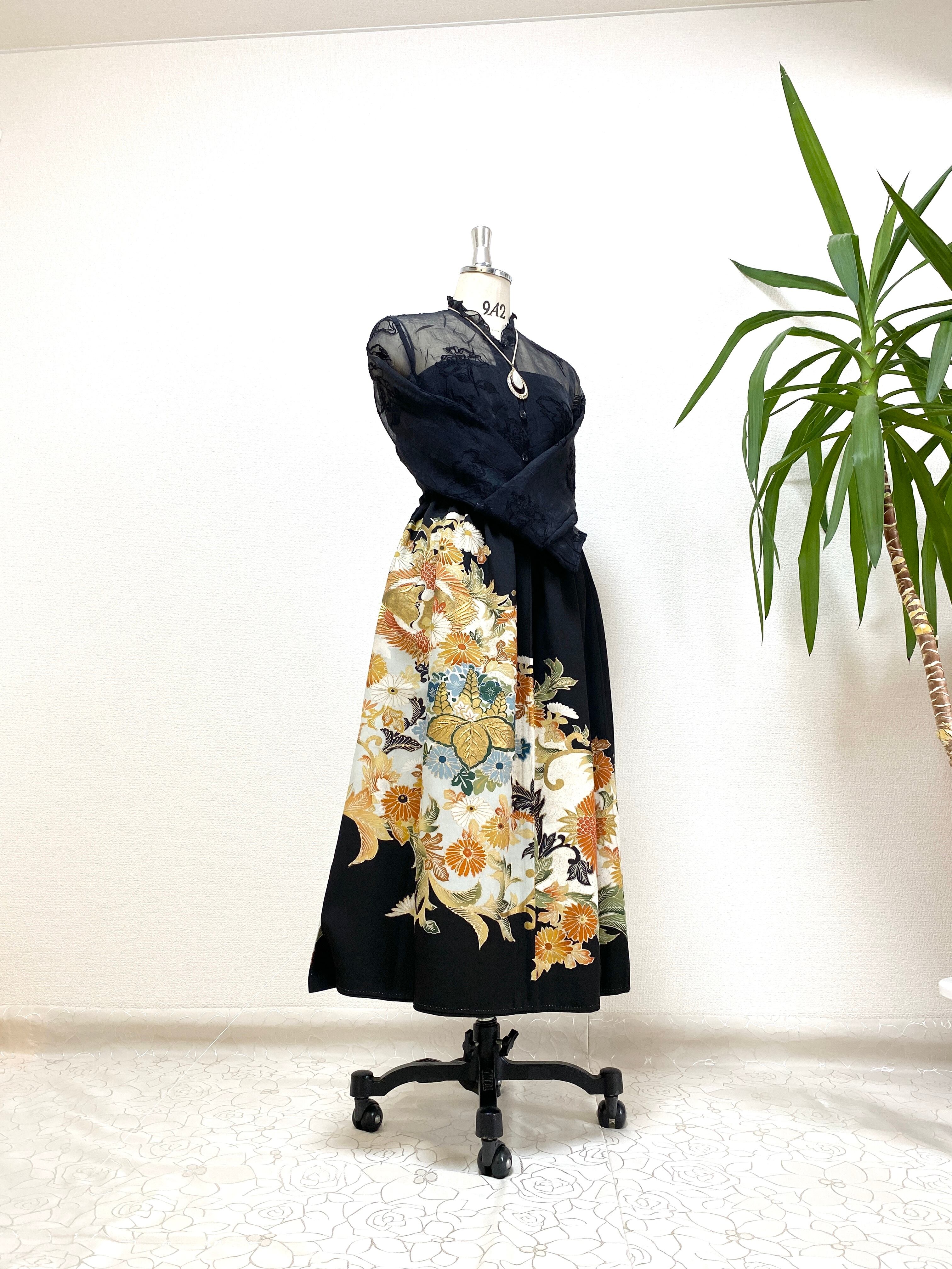 黒留袖着物リメイクウエストゴムロングドレススカートフリーサイズ【おチビさん用】