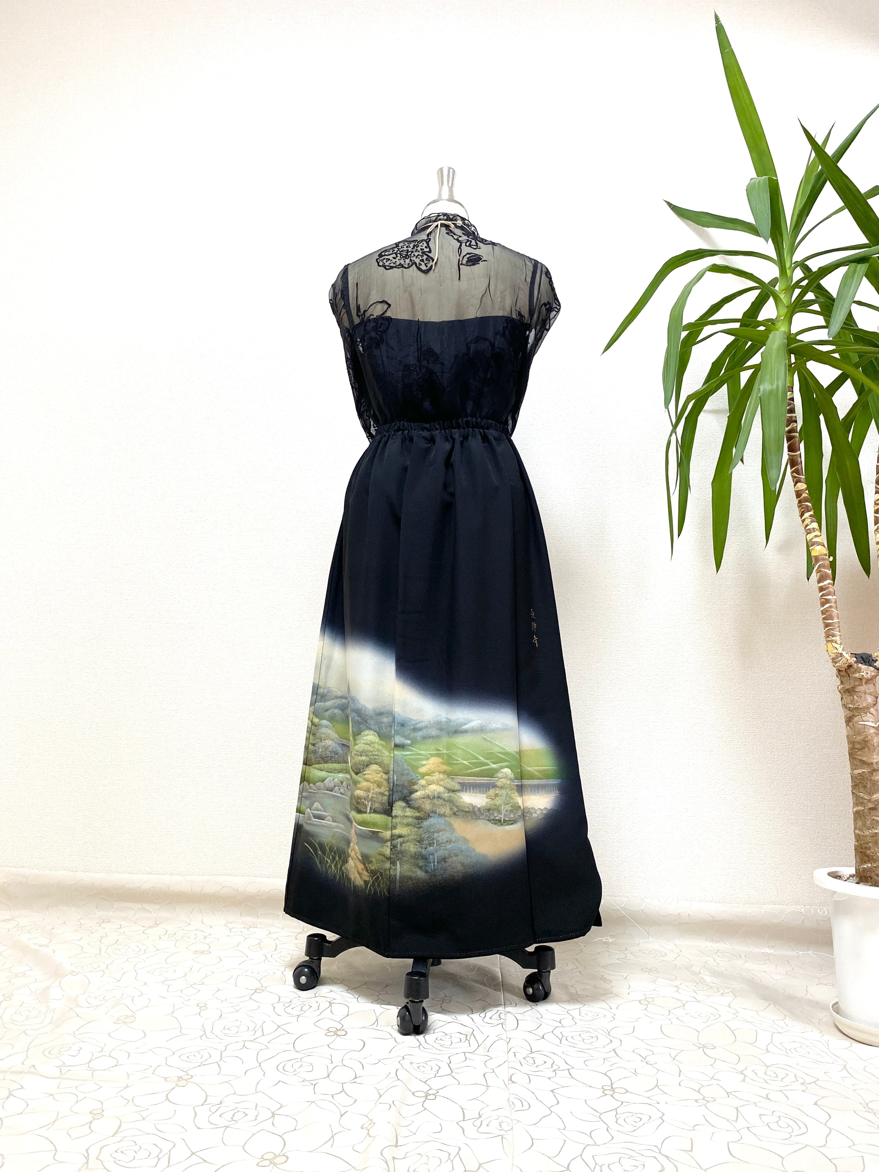 黒留袖着物リメイクウエストゴムロングドレススカートフリーサイズ【超ロング丈】