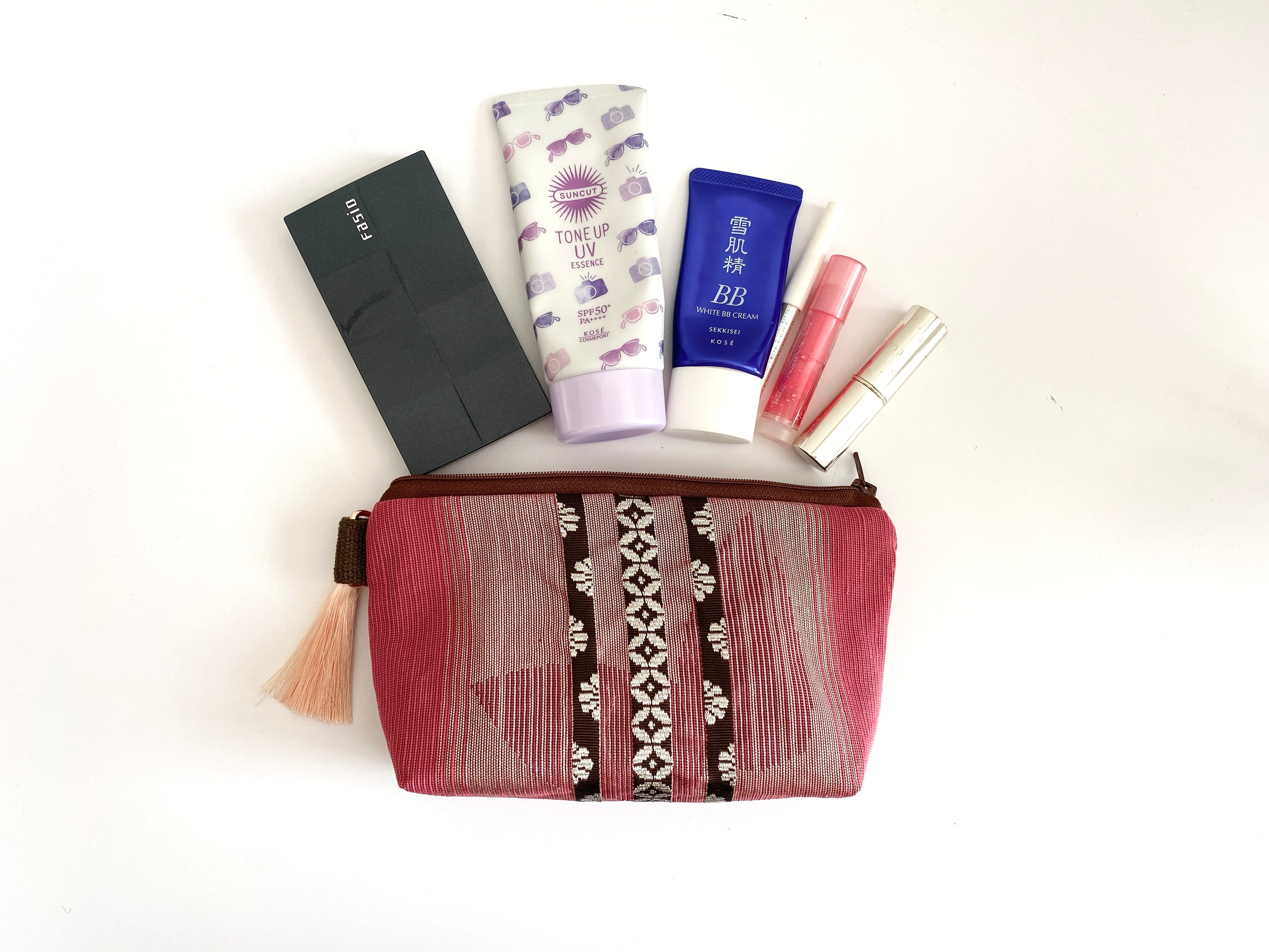 化粧道具・小物など細々したのを入れたり、バッグインバッグとしても使用できる帯リメイクポーチです。