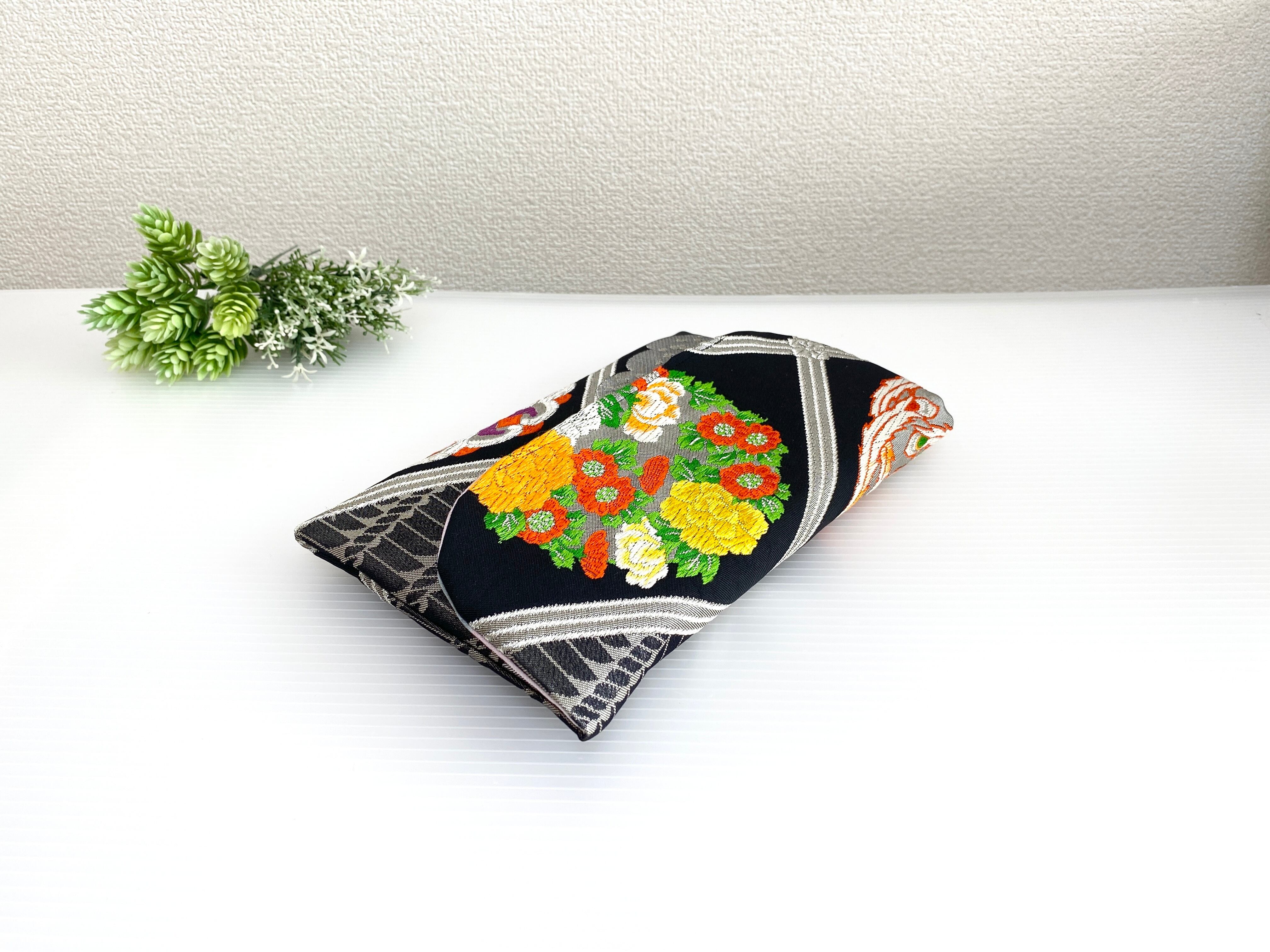 触り心地が滑らかで手にしっくりとくる安心感。絵柄の鮮やかさは日本の着物帯ならではの存在感で素晴らしく華やかな美しさです。