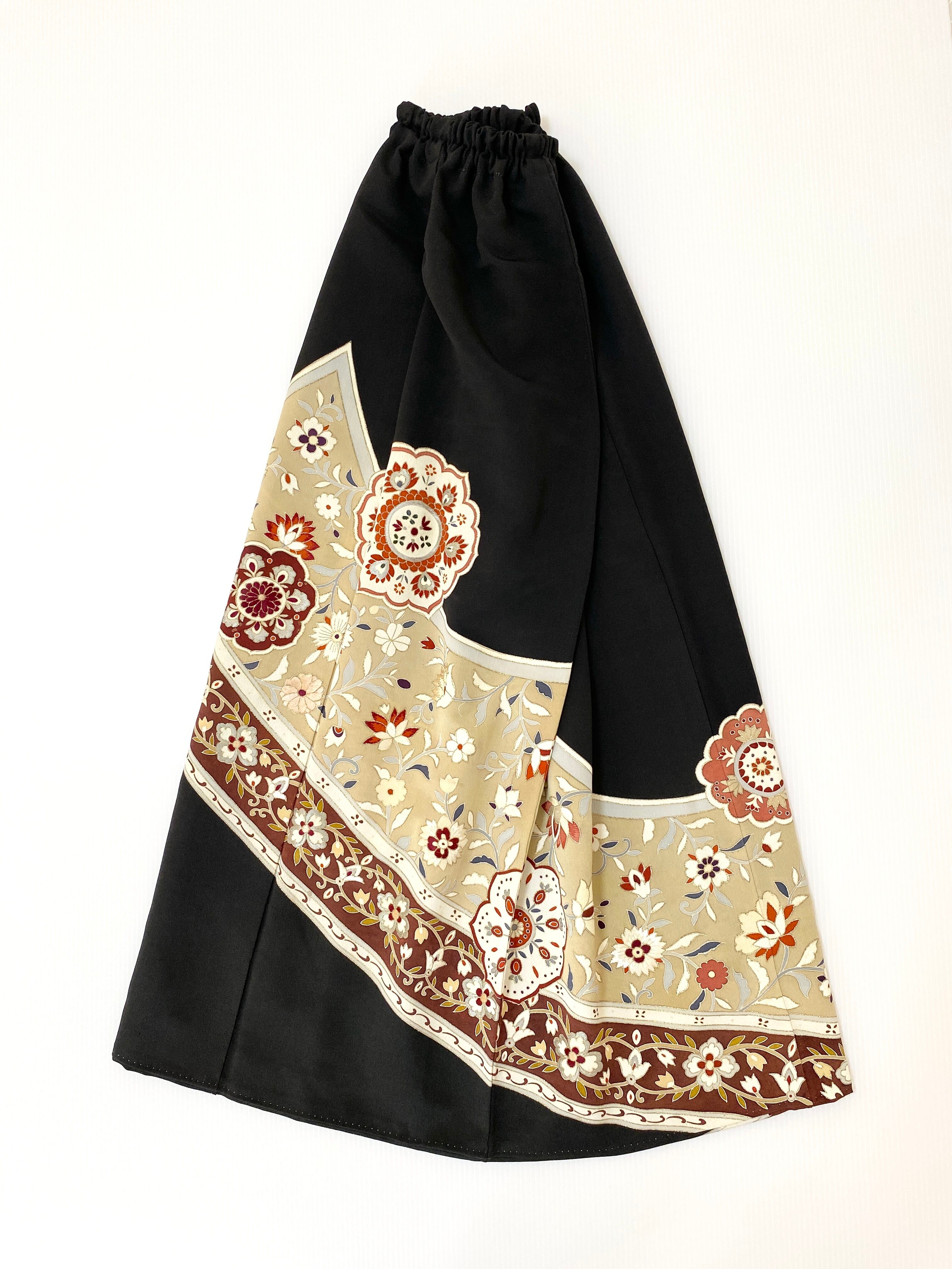 黒留袖着物リメイクウエストゴムロングスカートフリーサイズ【超ロング丈】
