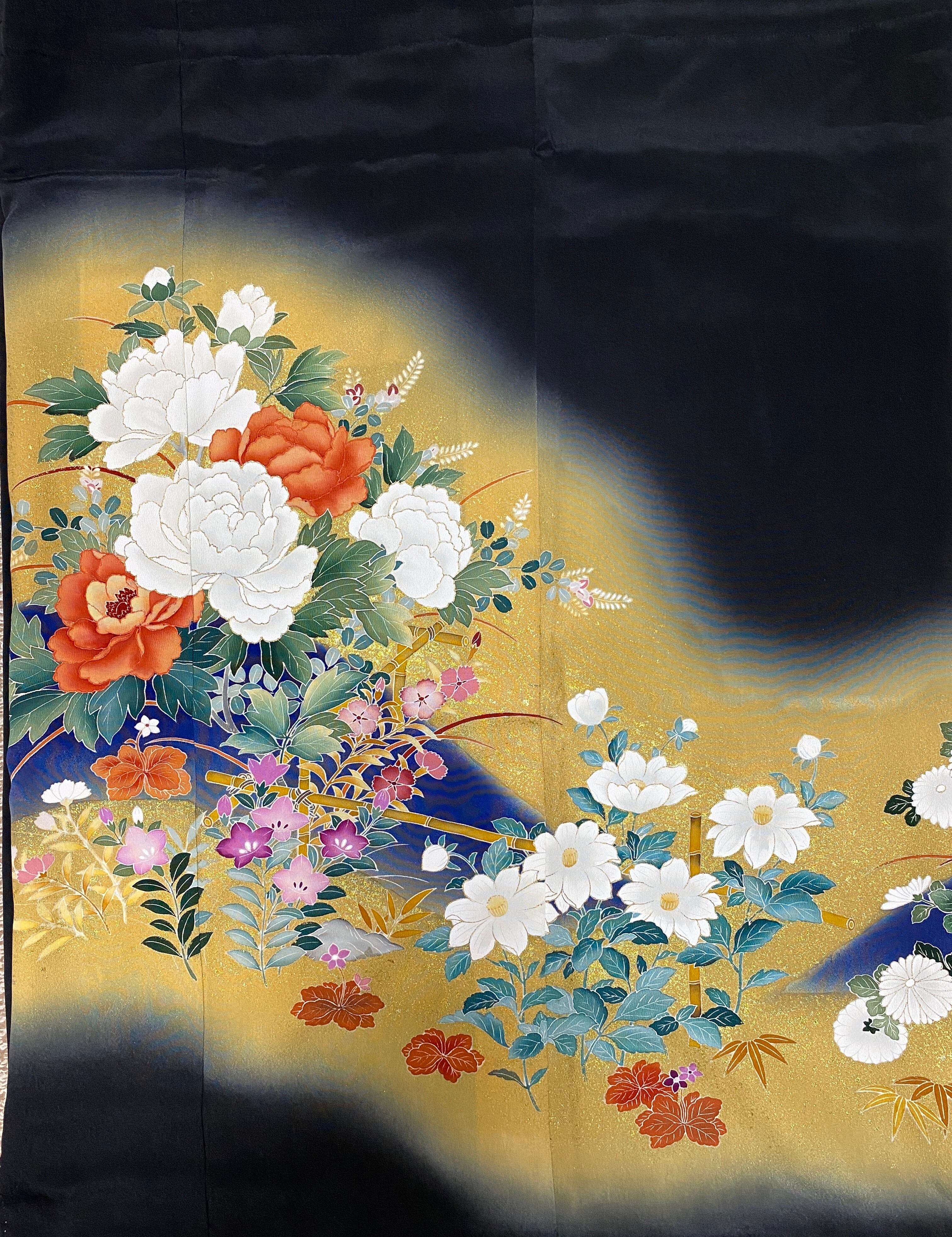 黒留袖着物リメイクウエストゴムロングスカート送料無料フリーサイズ1点物黒留袖着物リメイクロングスカートフリーサイズNO.1829