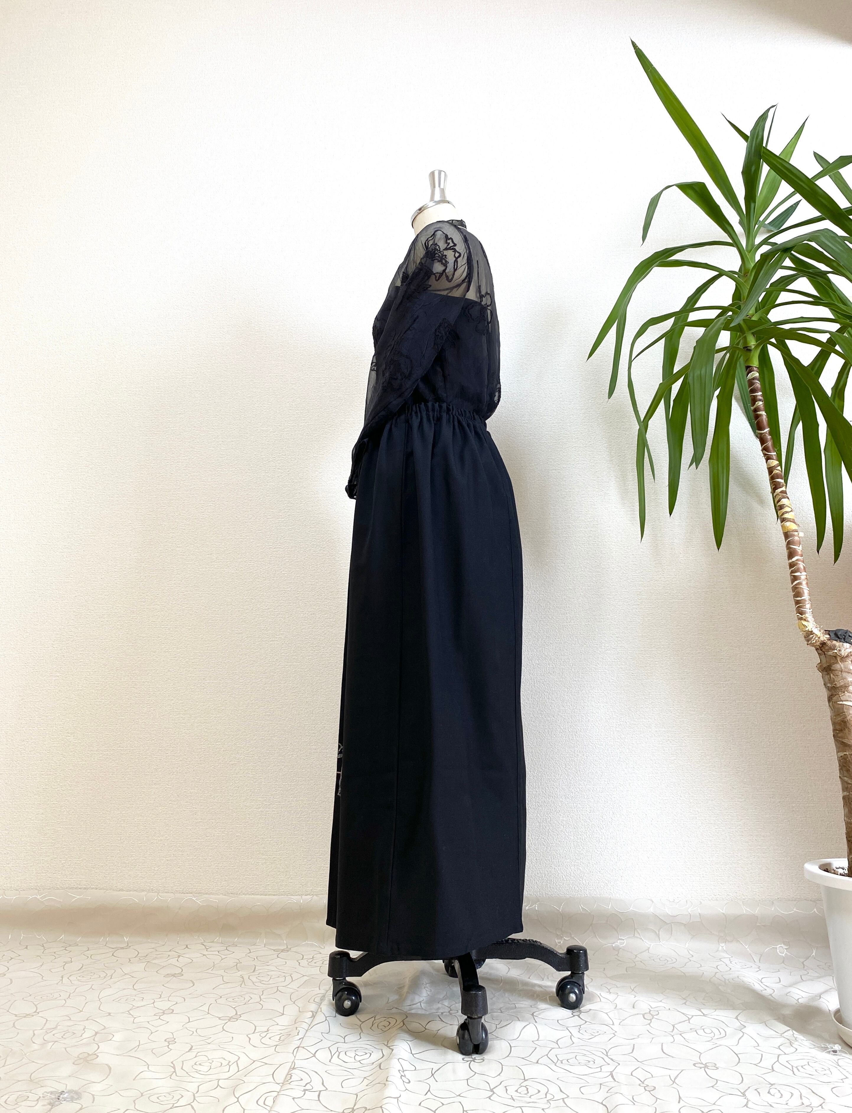 着物をリメイクして作製したウエストゴムロングドレススカートフリーサイズです。