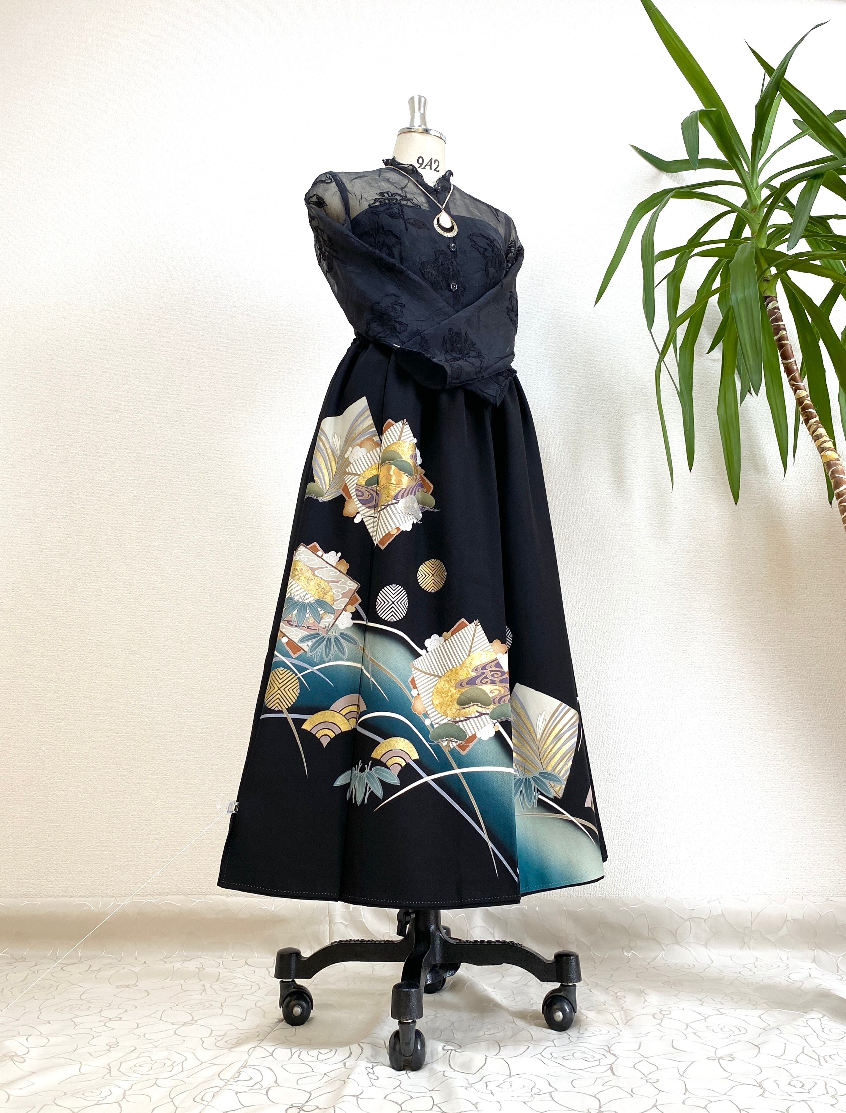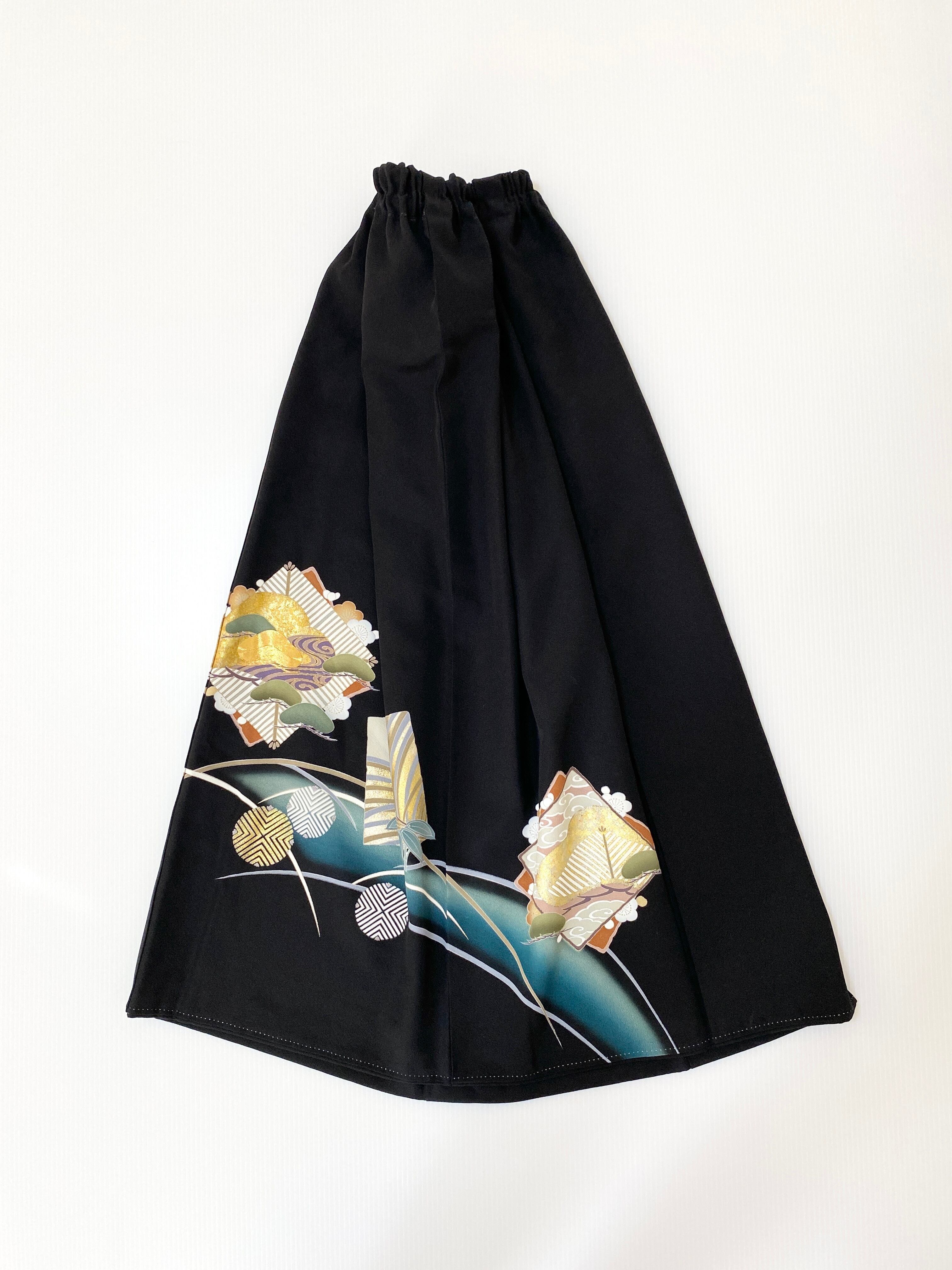黒留袖着物リメイクウエストゴムロングスカートフリーサイズ