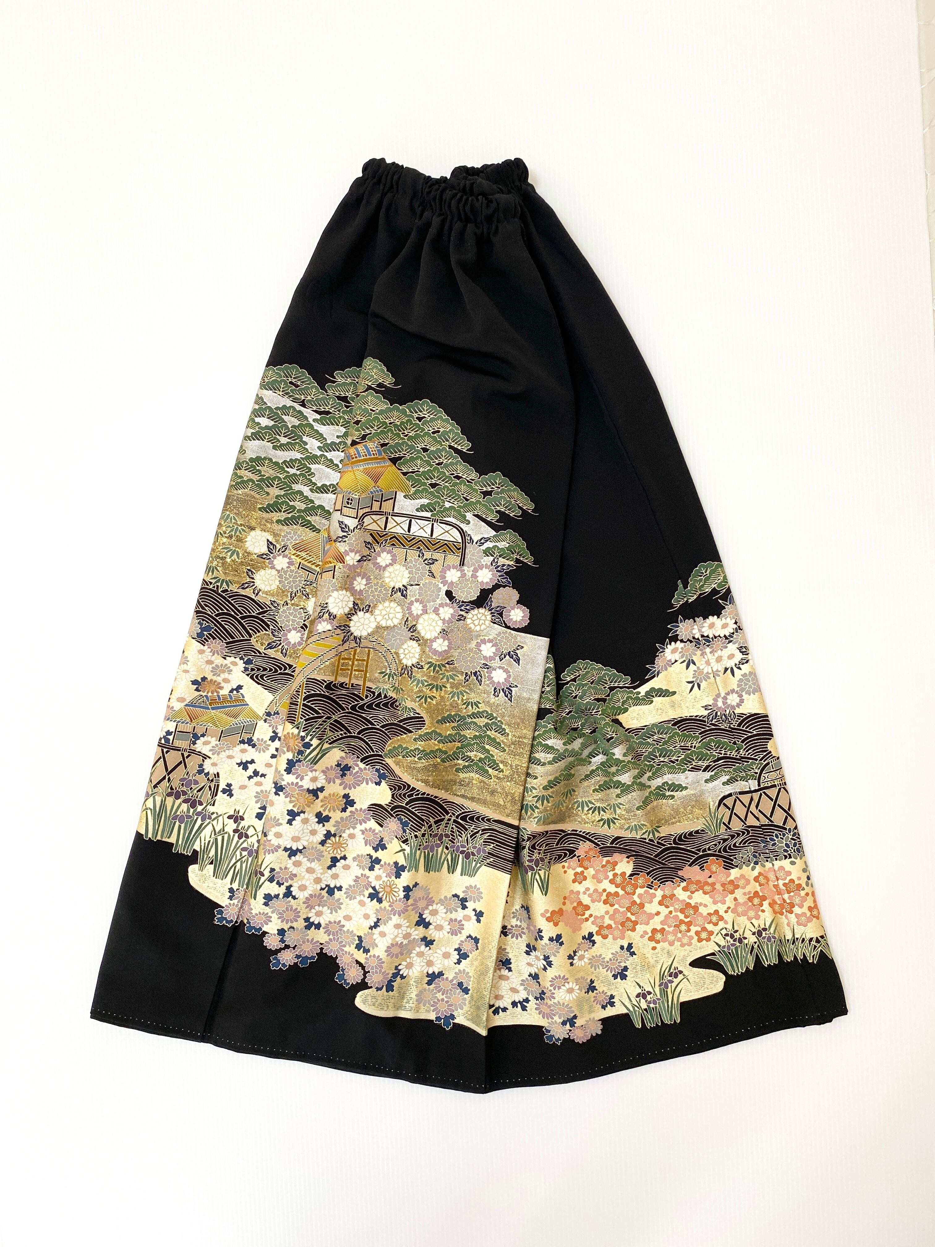 黒留袖着物リメイクウエストゴムロングスカートフリーサイズ