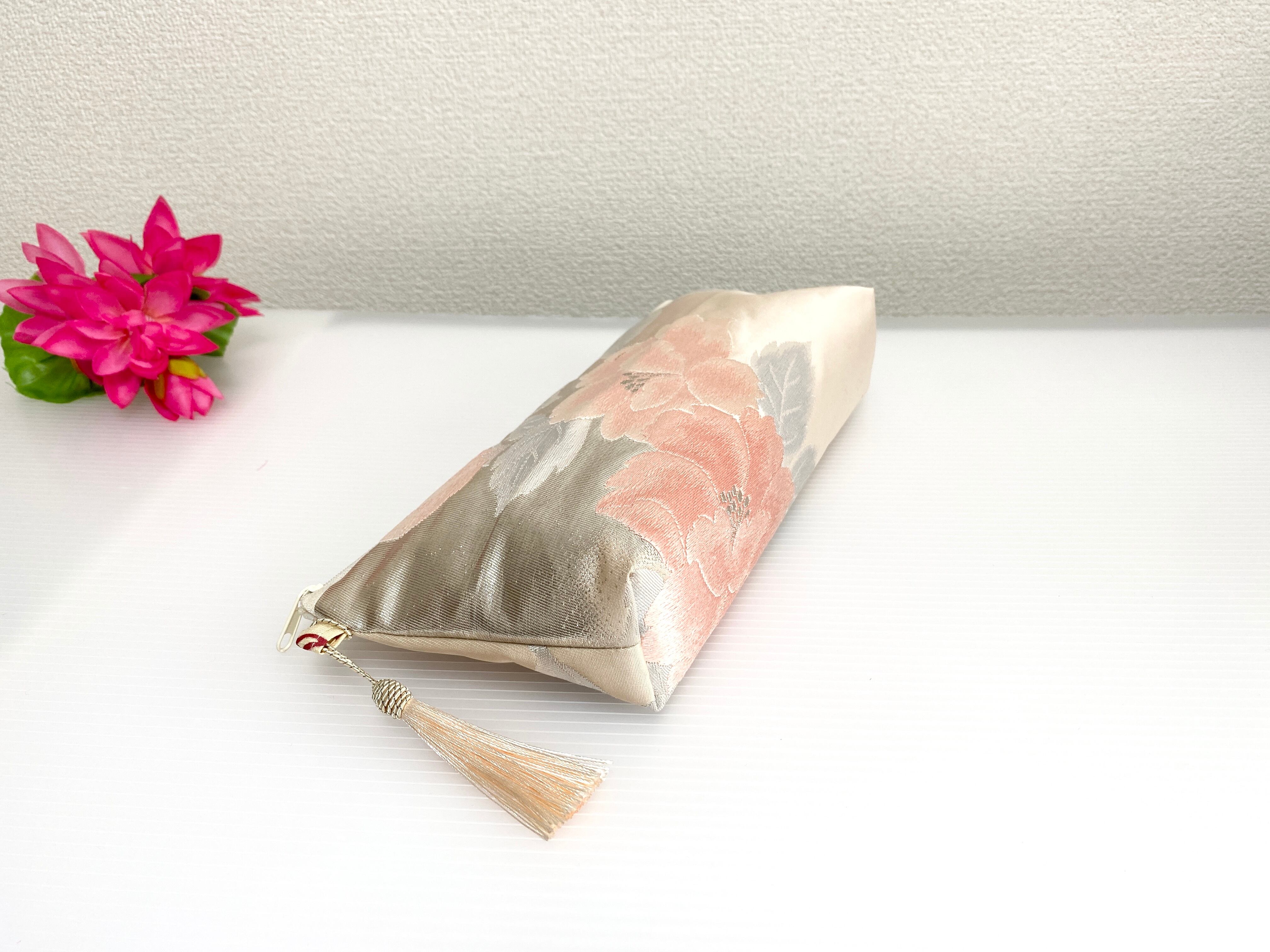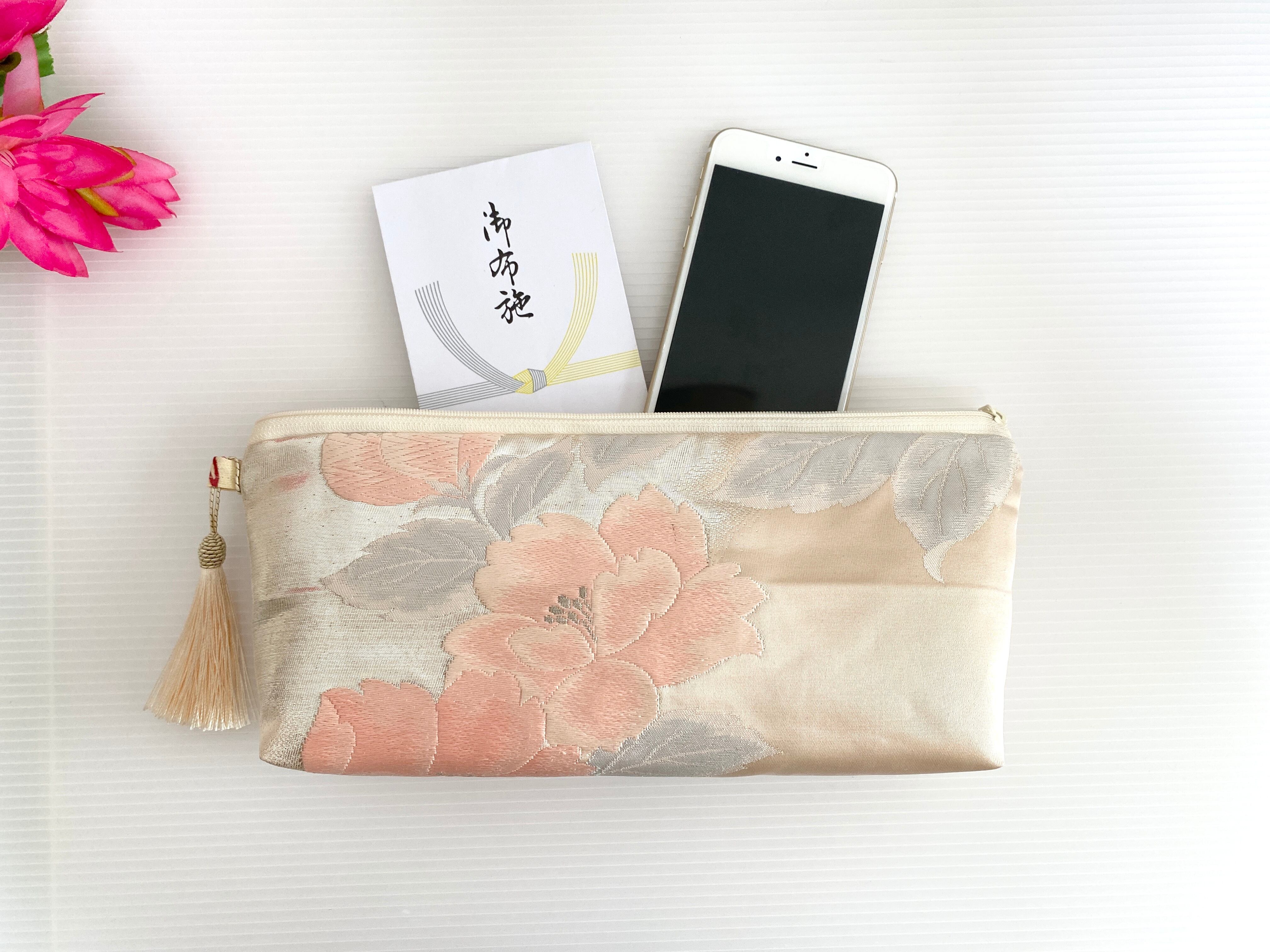 日本の古帯を再利用リメイクして作製したポーチでハンドメイド品です