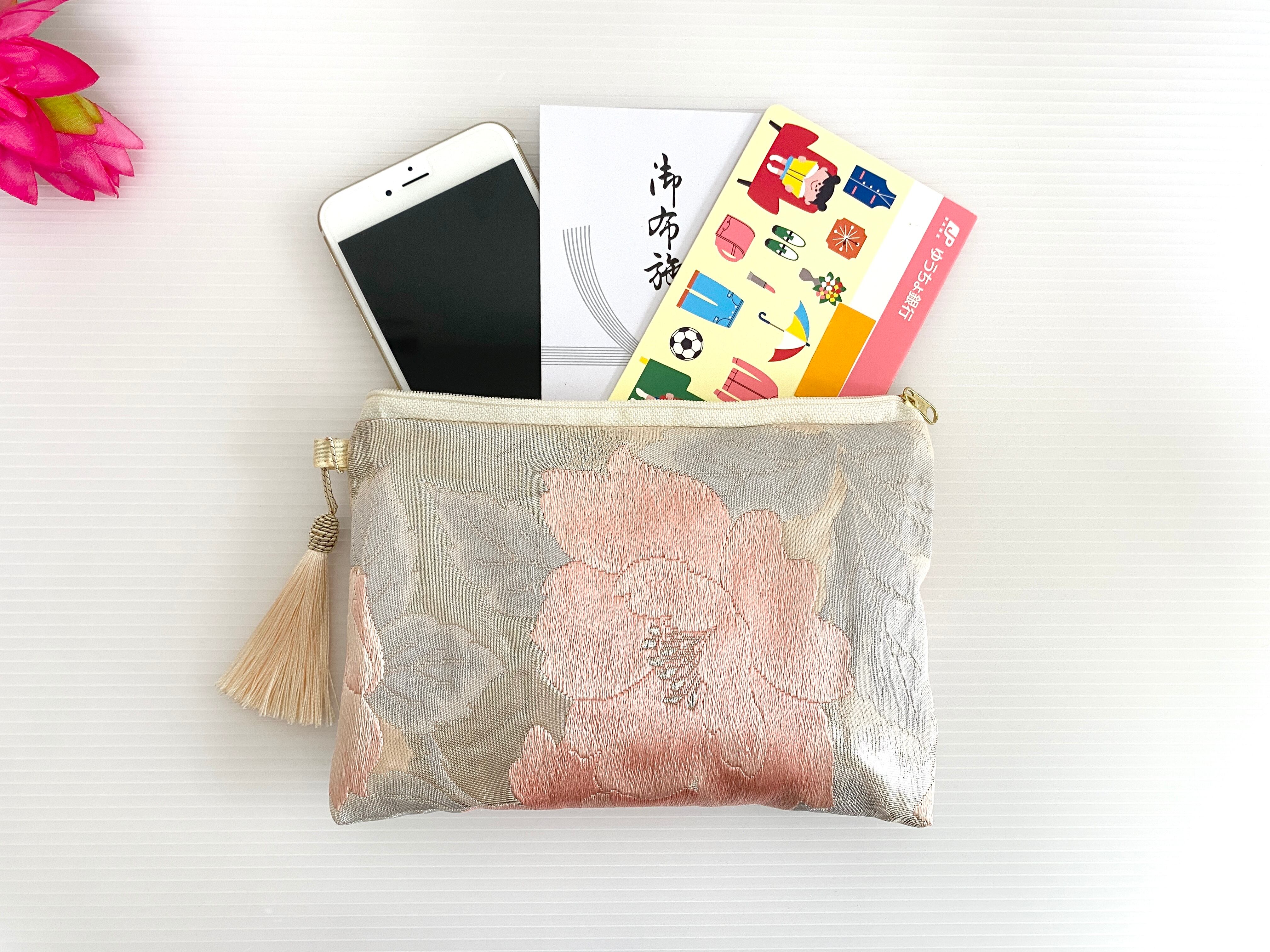 日本の古帯を再利用リメイクして作製したポーチでハンドメイド品です