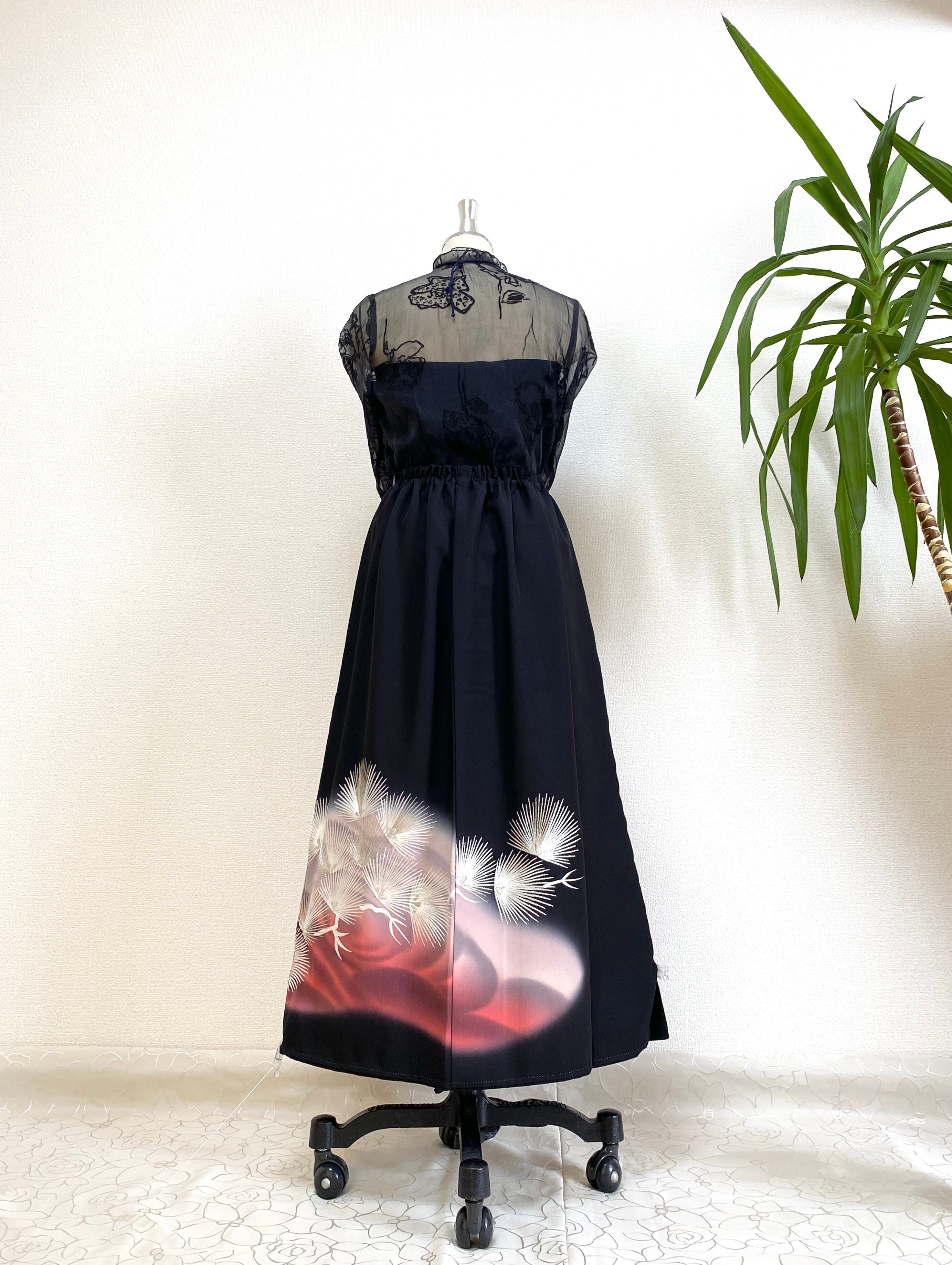 黒留袖着物リメイクウエストゴムロングスカートフリーサイズ