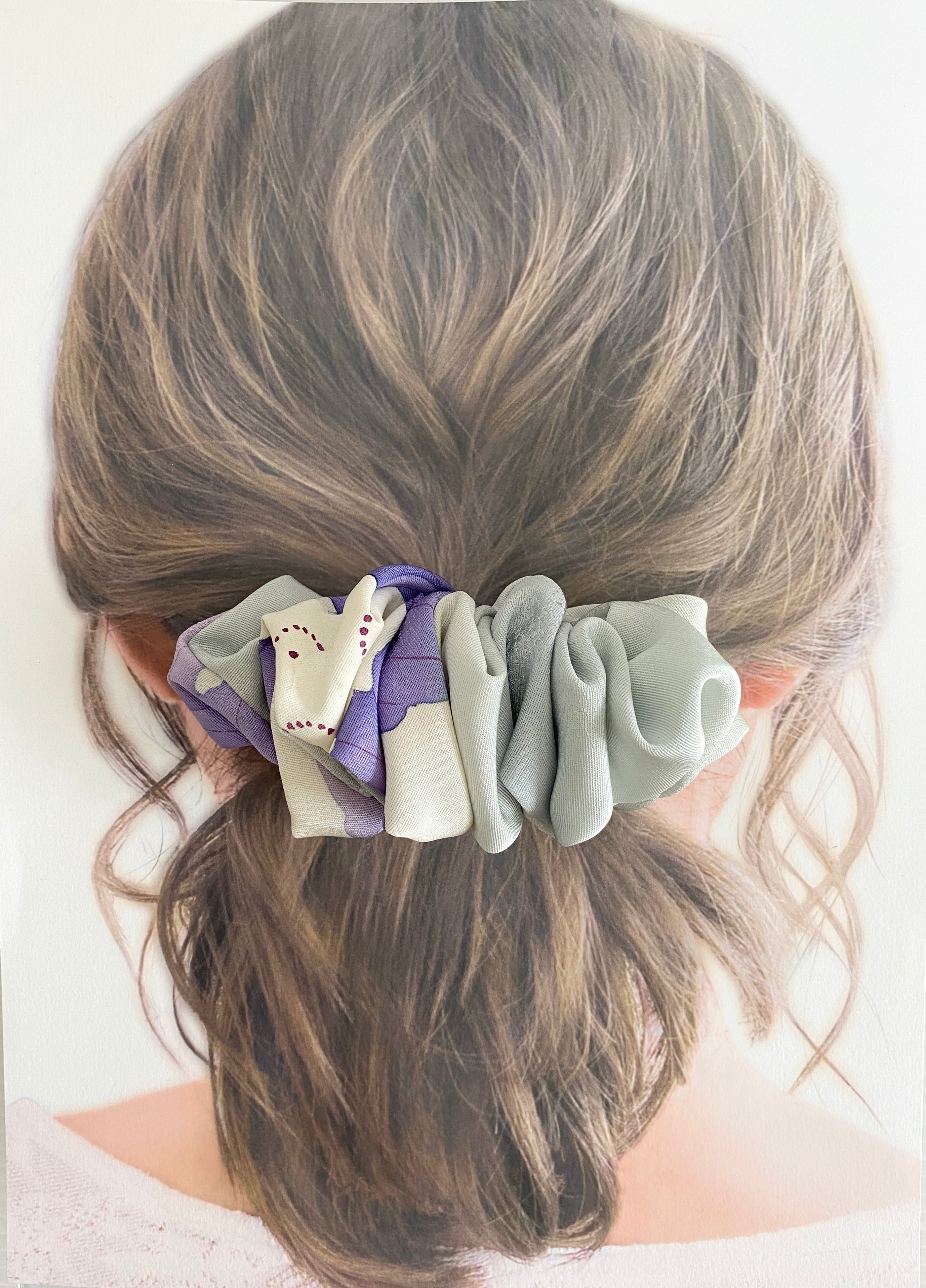 着物布生地なので柔らかで薄い布生地な為触り心地が良く滑らかで髪結びの装着がとても良いシュシュヘアゴムです。