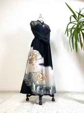 黒留袖着物リメイクウエストゴムロングスカートフリーサイズ