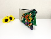日本の古帯をリメイクして作製したポーチでハンドメイド品です。