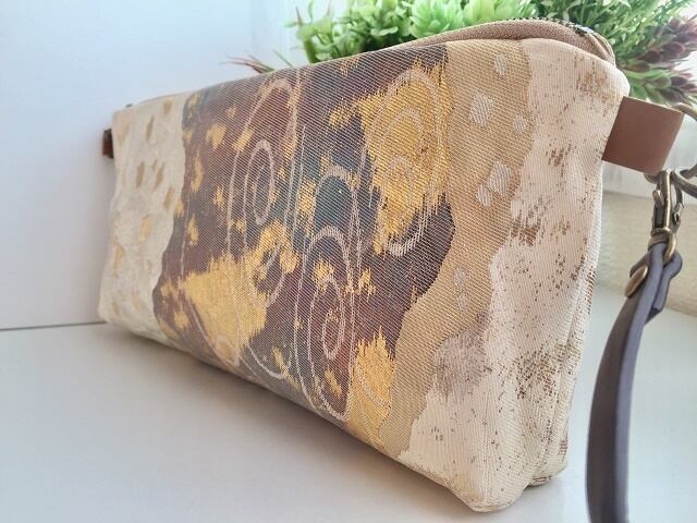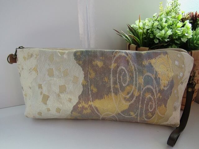 日本の古帯を再利用リメイクして作製したポーチでハンドメイド品です。