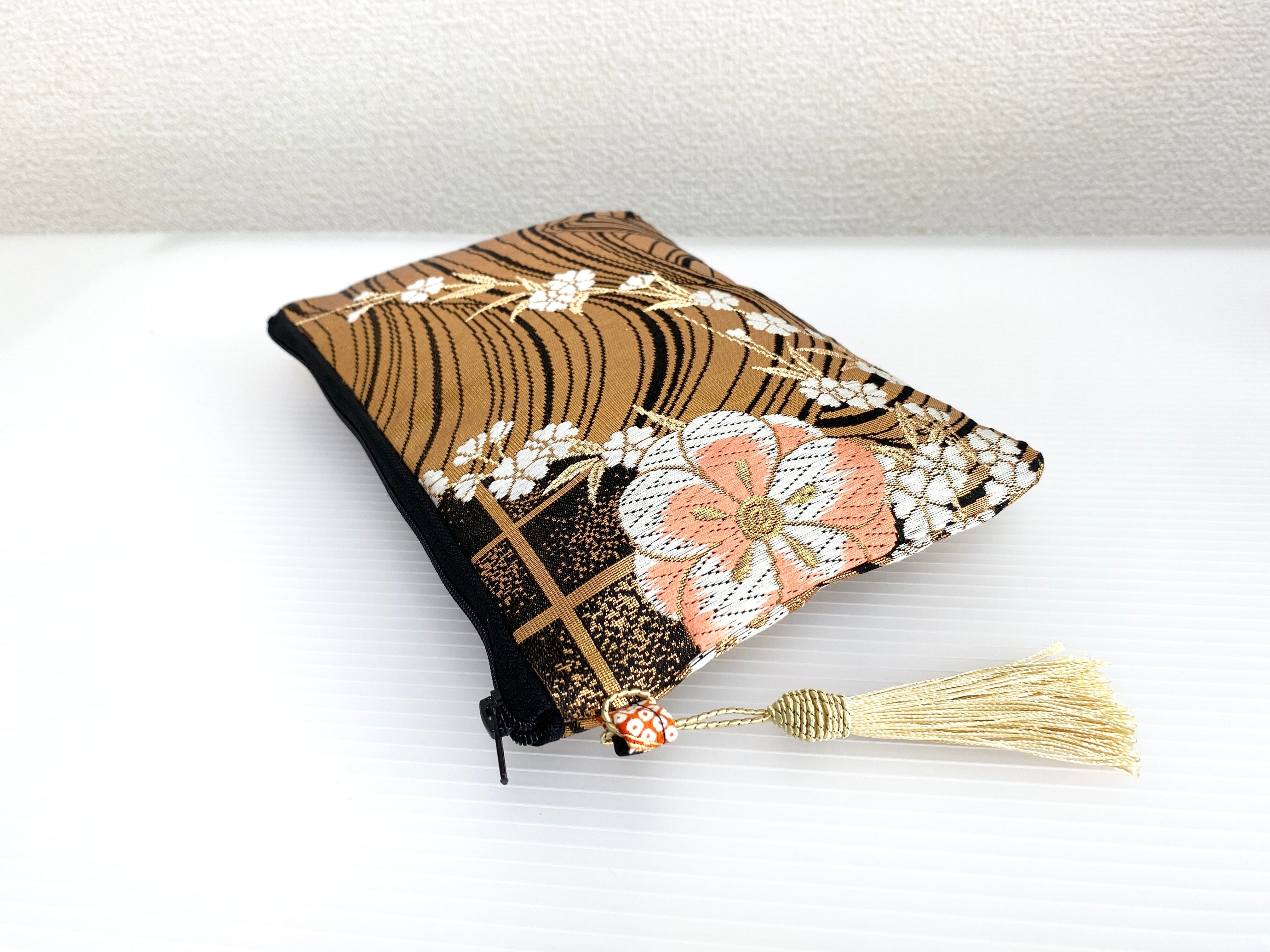 日本の古帯をリメイクして作製したポーチでハンドメイド品です。