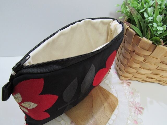 日本の古帯を再利用リメイクして作製したポーチでハンドメイド品です。