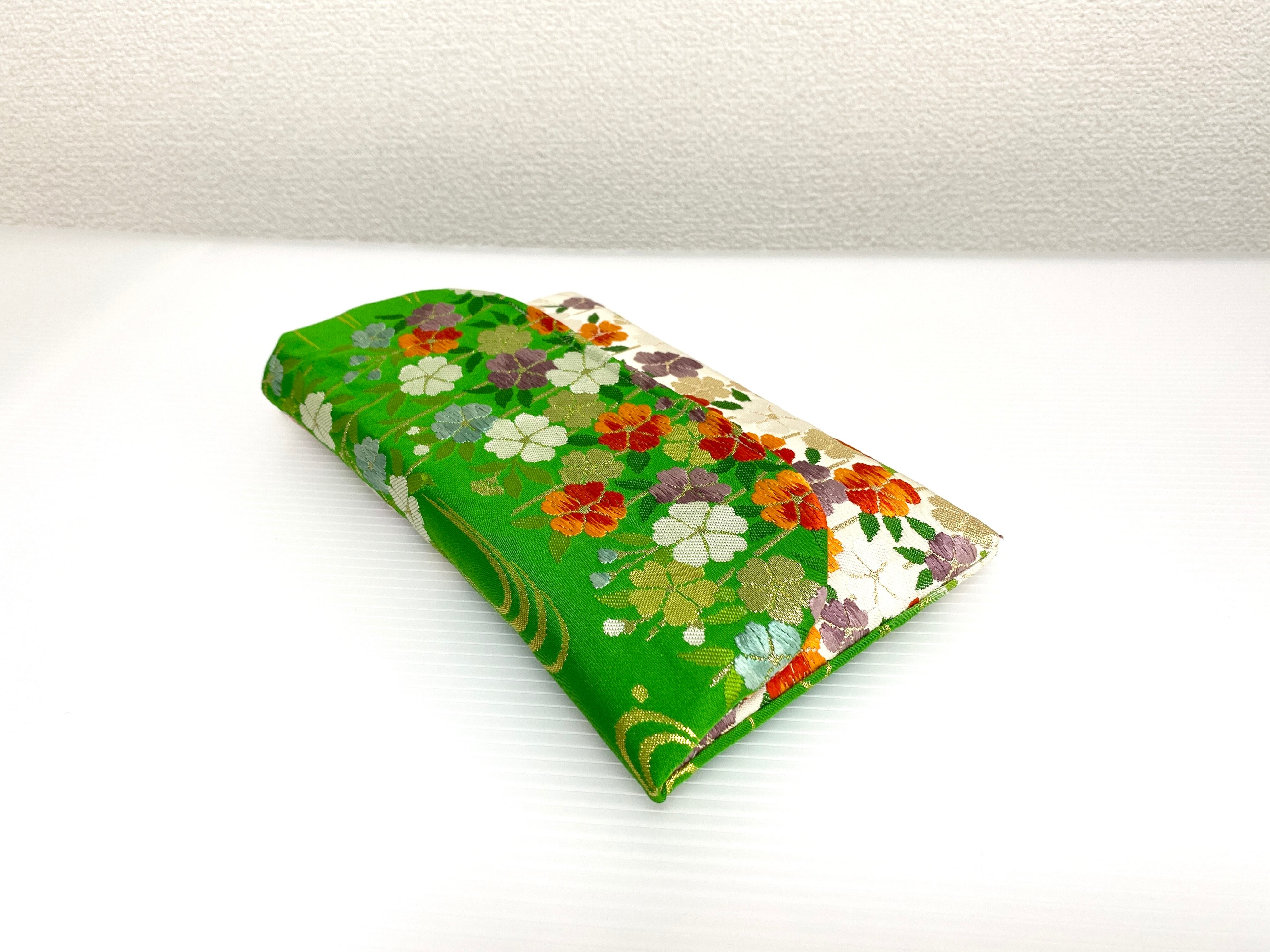 触り心地が滑らかで手にしっくりとくる安心感。絵柄の鮮やかさは日本の着物帯ならではの存在感で素晴らしく華やかな美しさです。