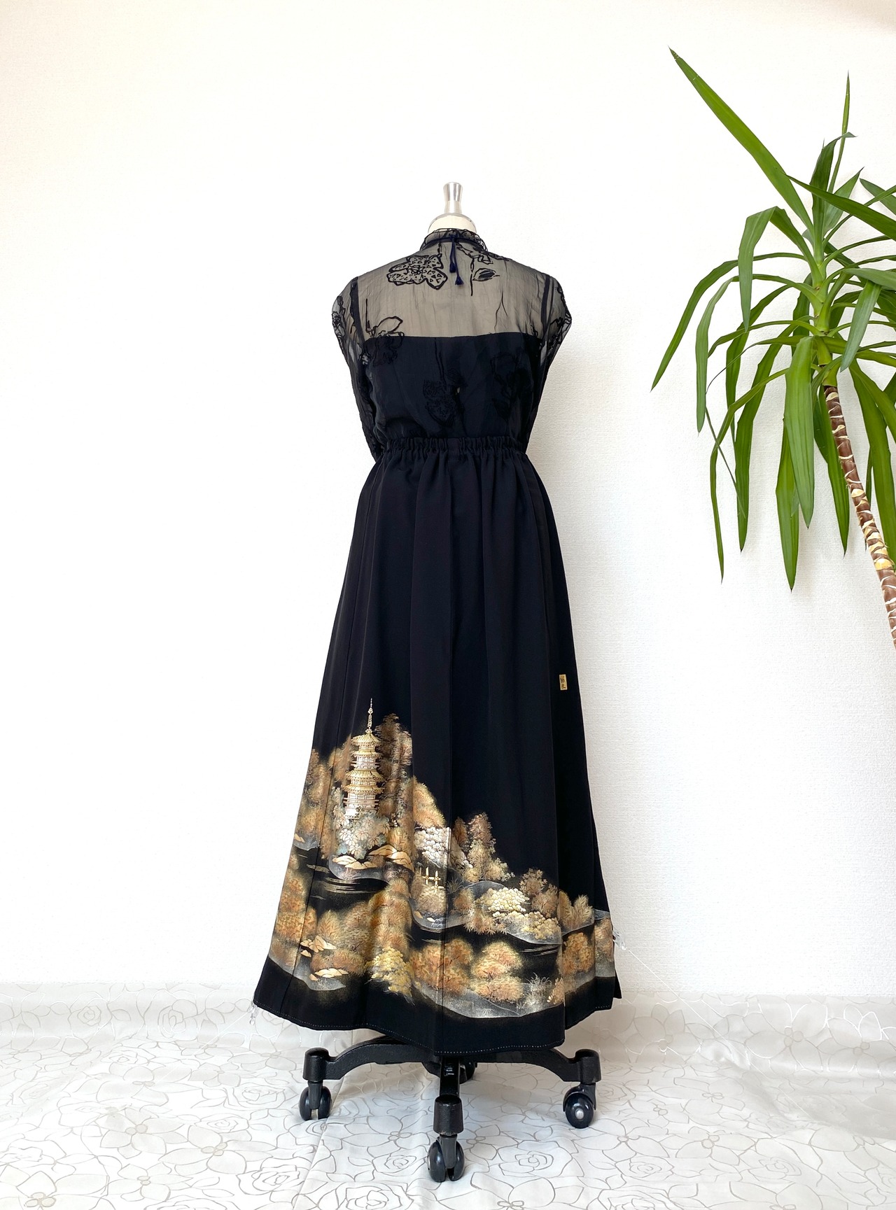 黒留袖着物リメイクウエストゴムロングスカートフリーサイズ