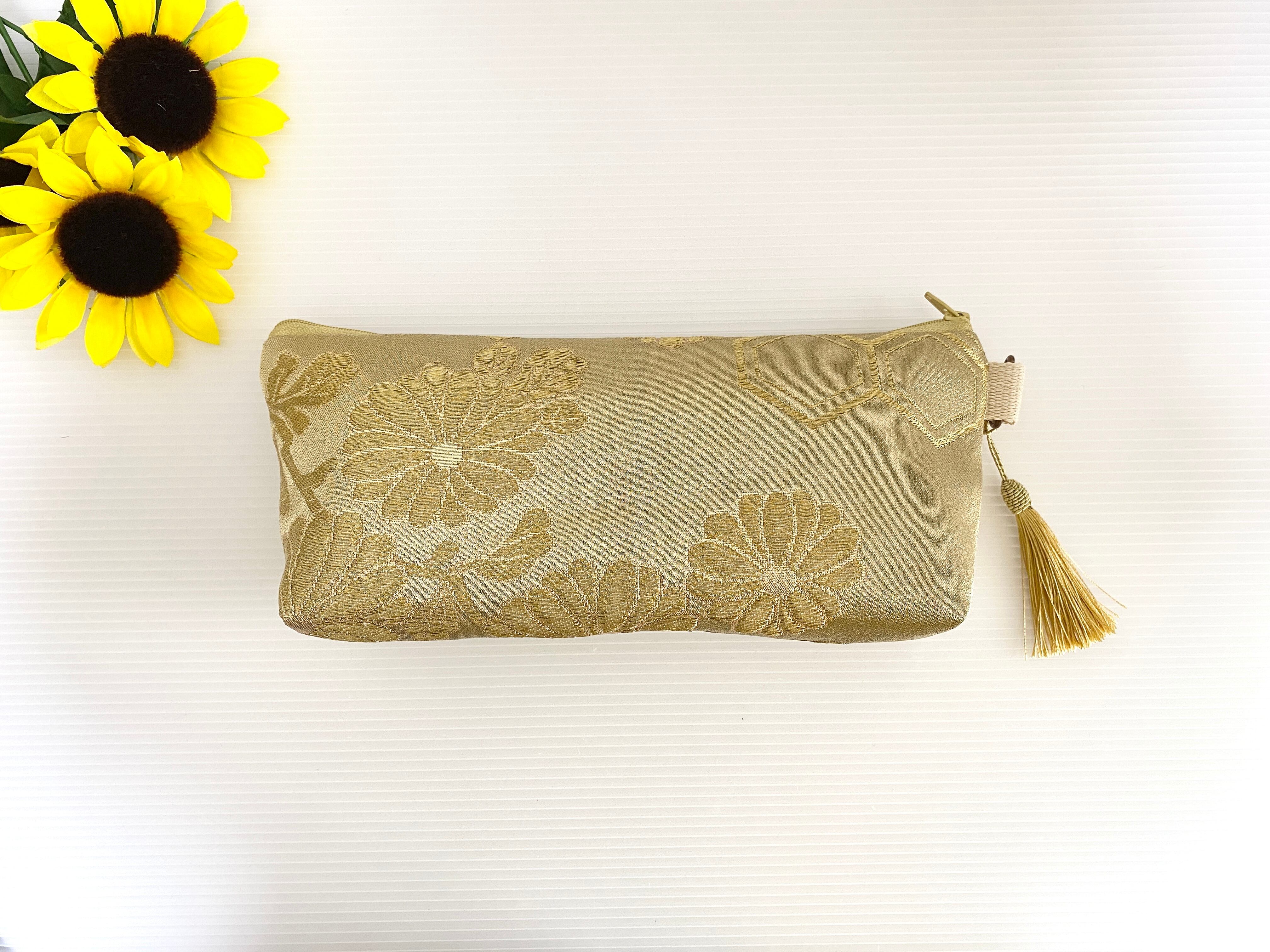 日本の古帯をリメイクして作製した帯リメイクポーチ【大きめ】