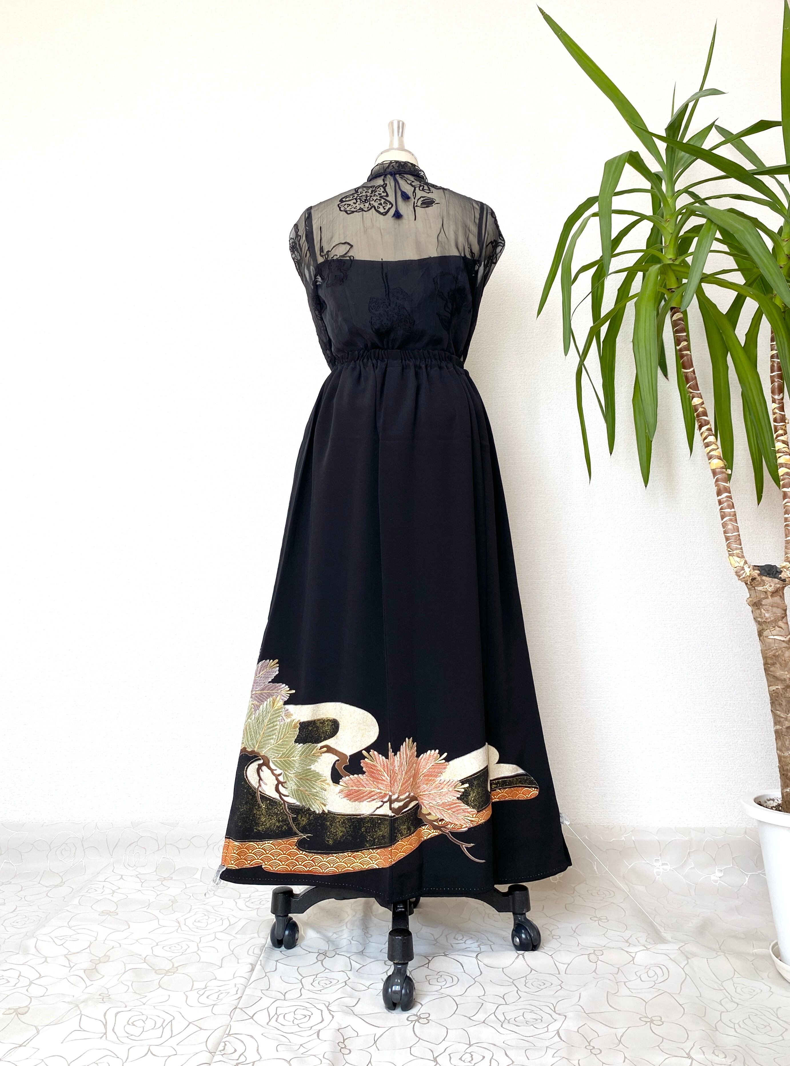 黒留袖着物をリメイクして作製したウエストゴムロングドレススカートフリーサイズです。