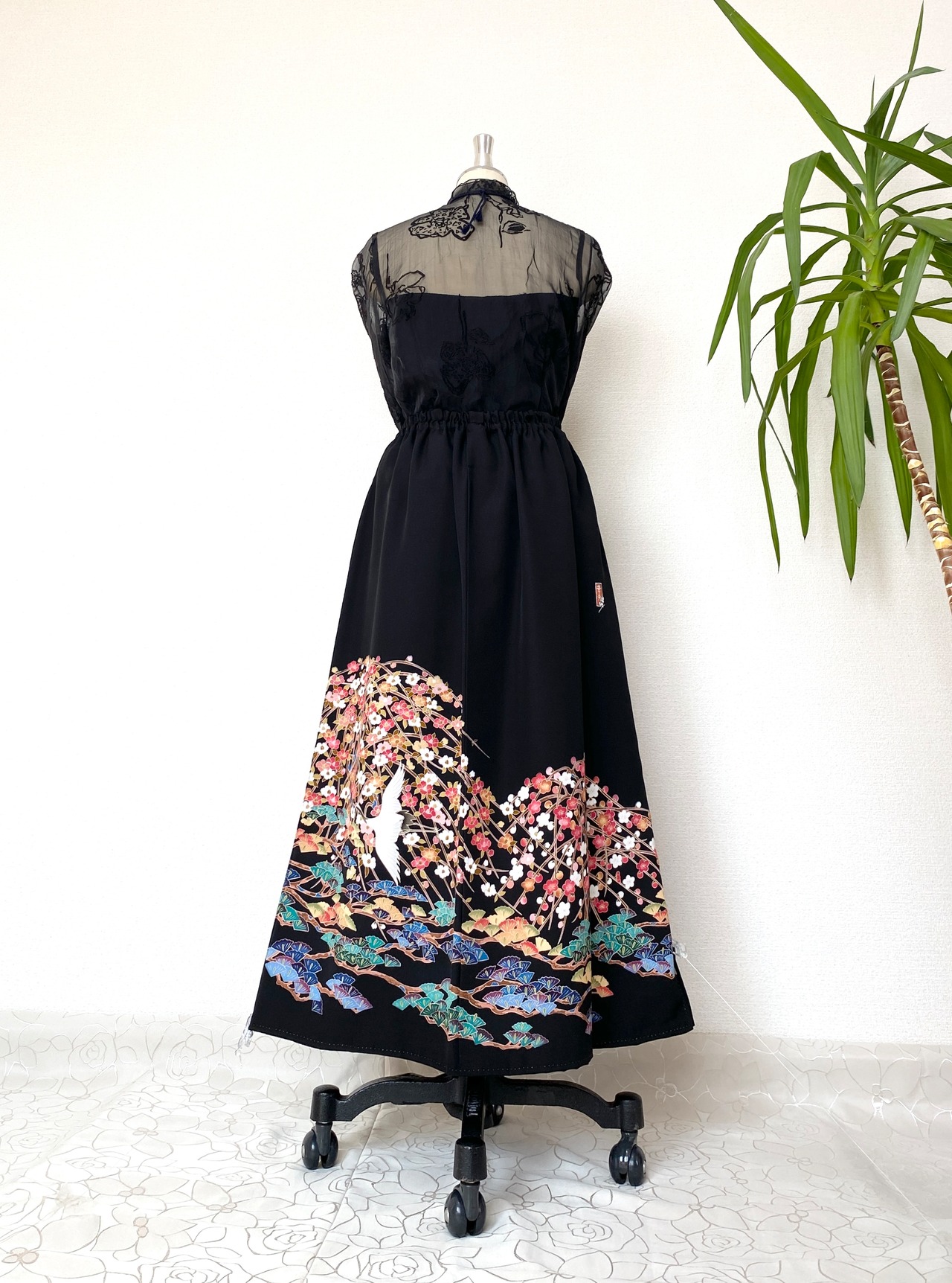 黒留袖着物リメイクウエストゴムロングスカートフリーサイズ
