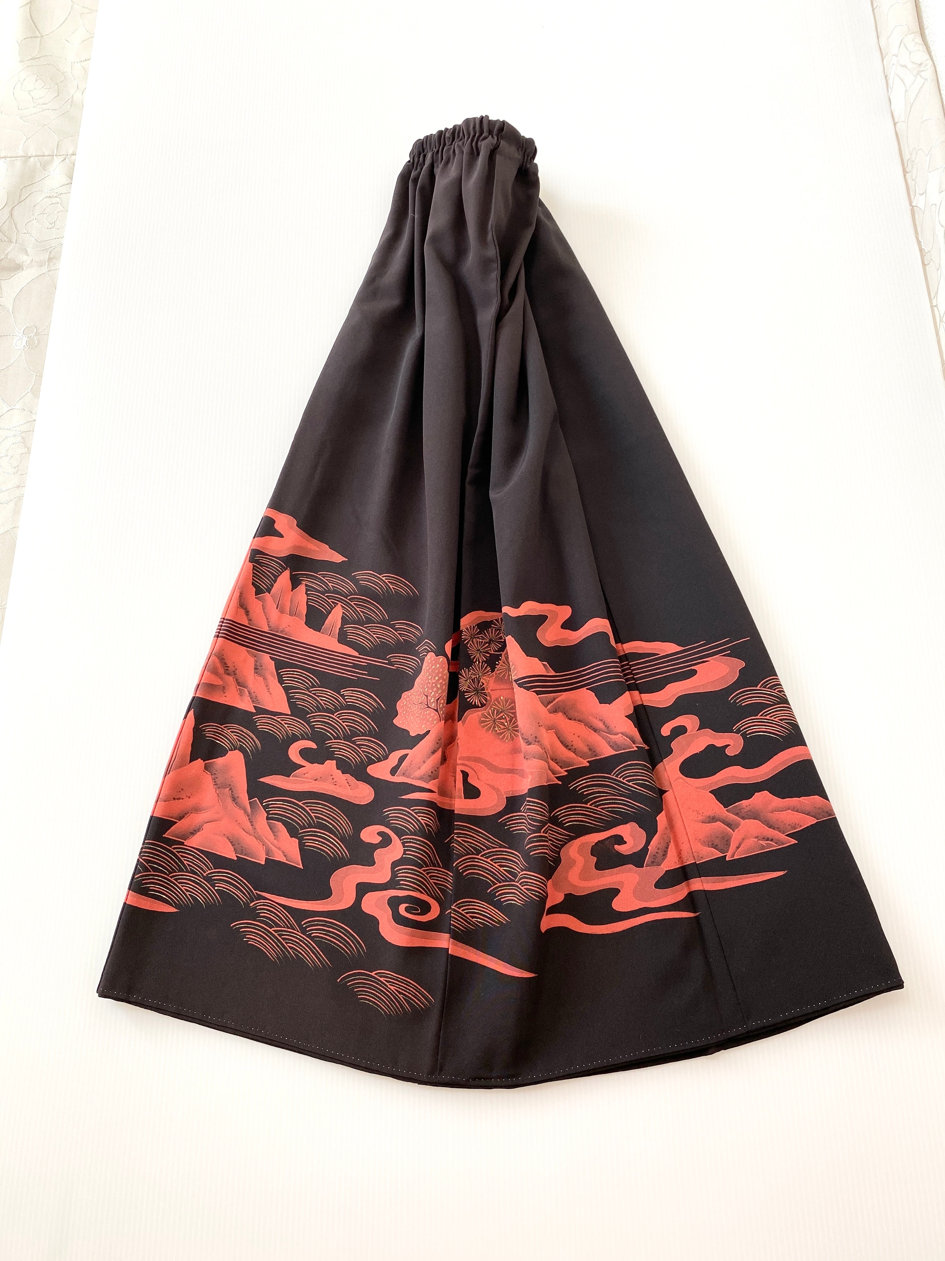 黒留袖着物をリメイクして作製したウエストゴムロングドレススカートフリーサイズ【超ロング丈】です。