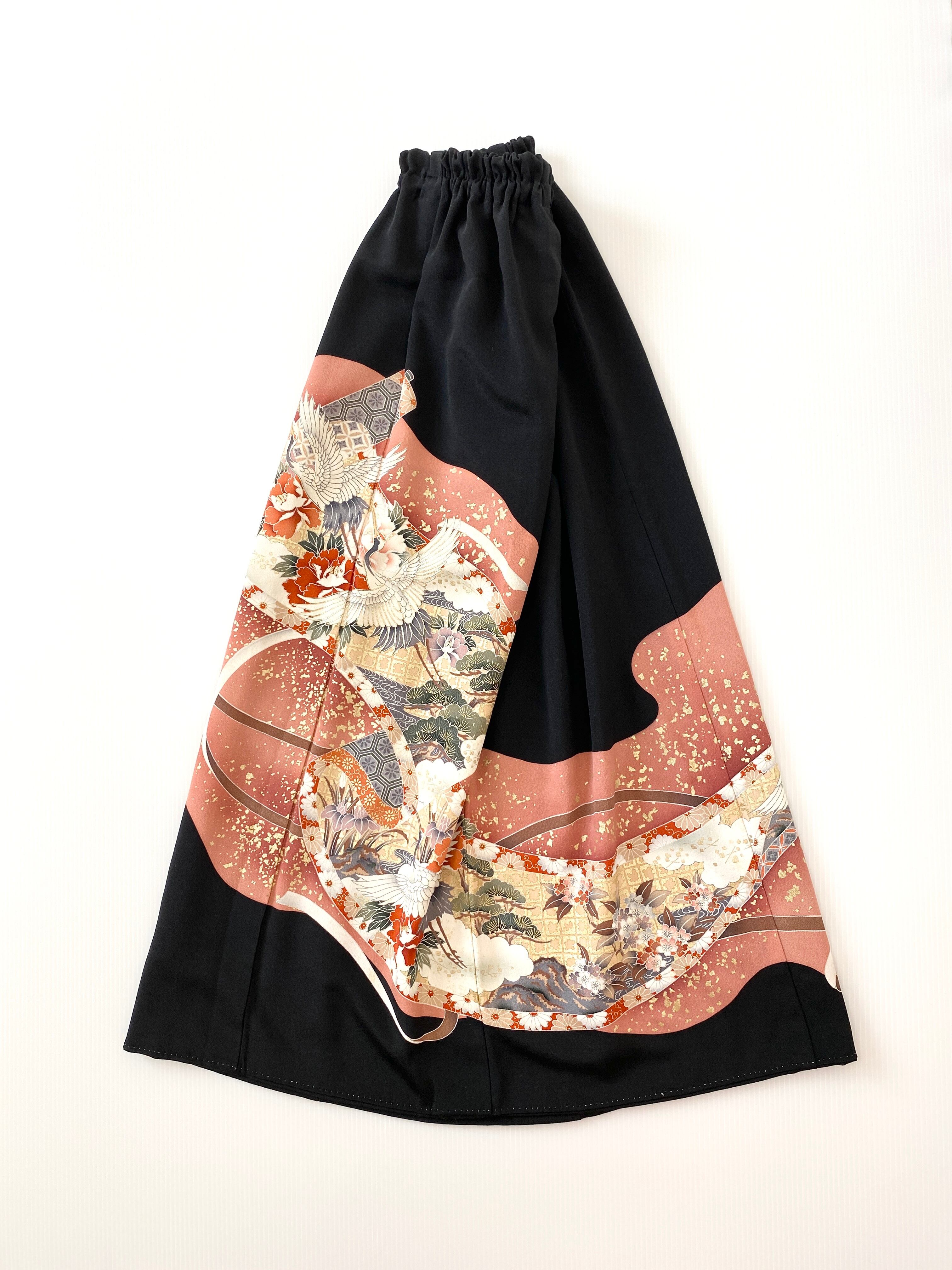 黒留袖着物リメイクウエストゴムロングスカートフリーサイズ