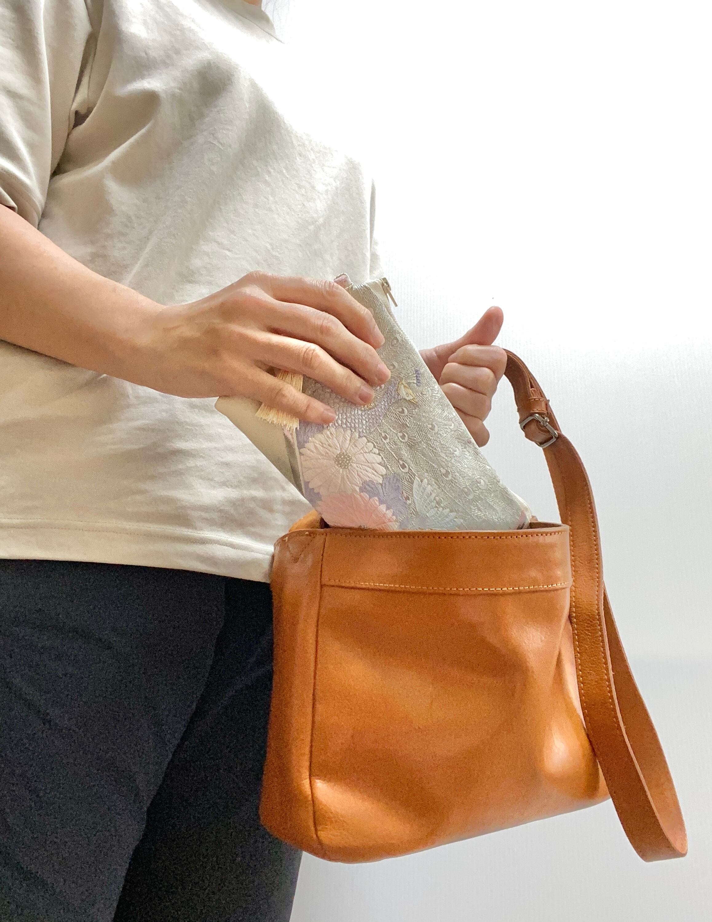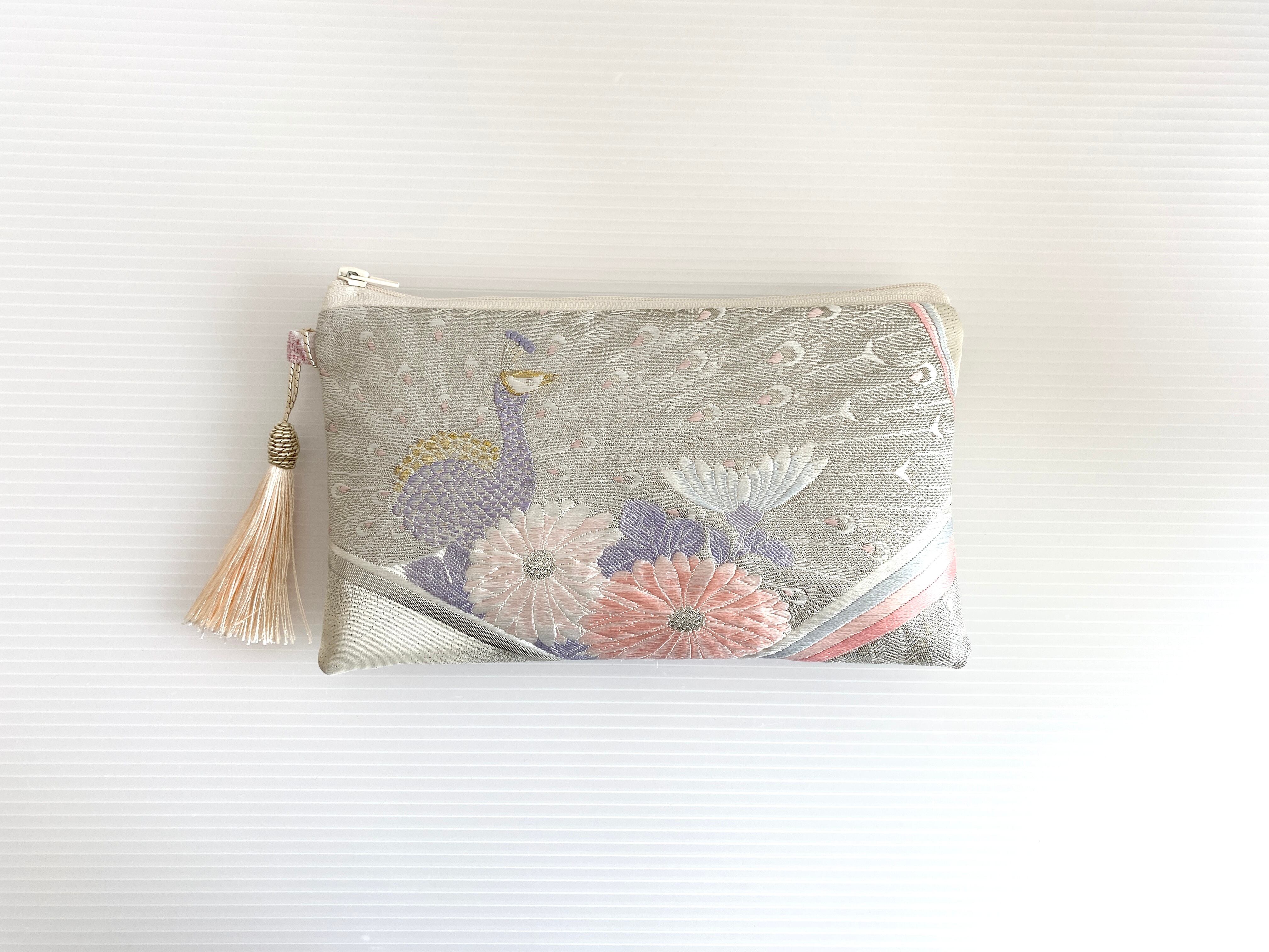 日本の古帯をリメイクして作製したポーチでハンドメイド品です。