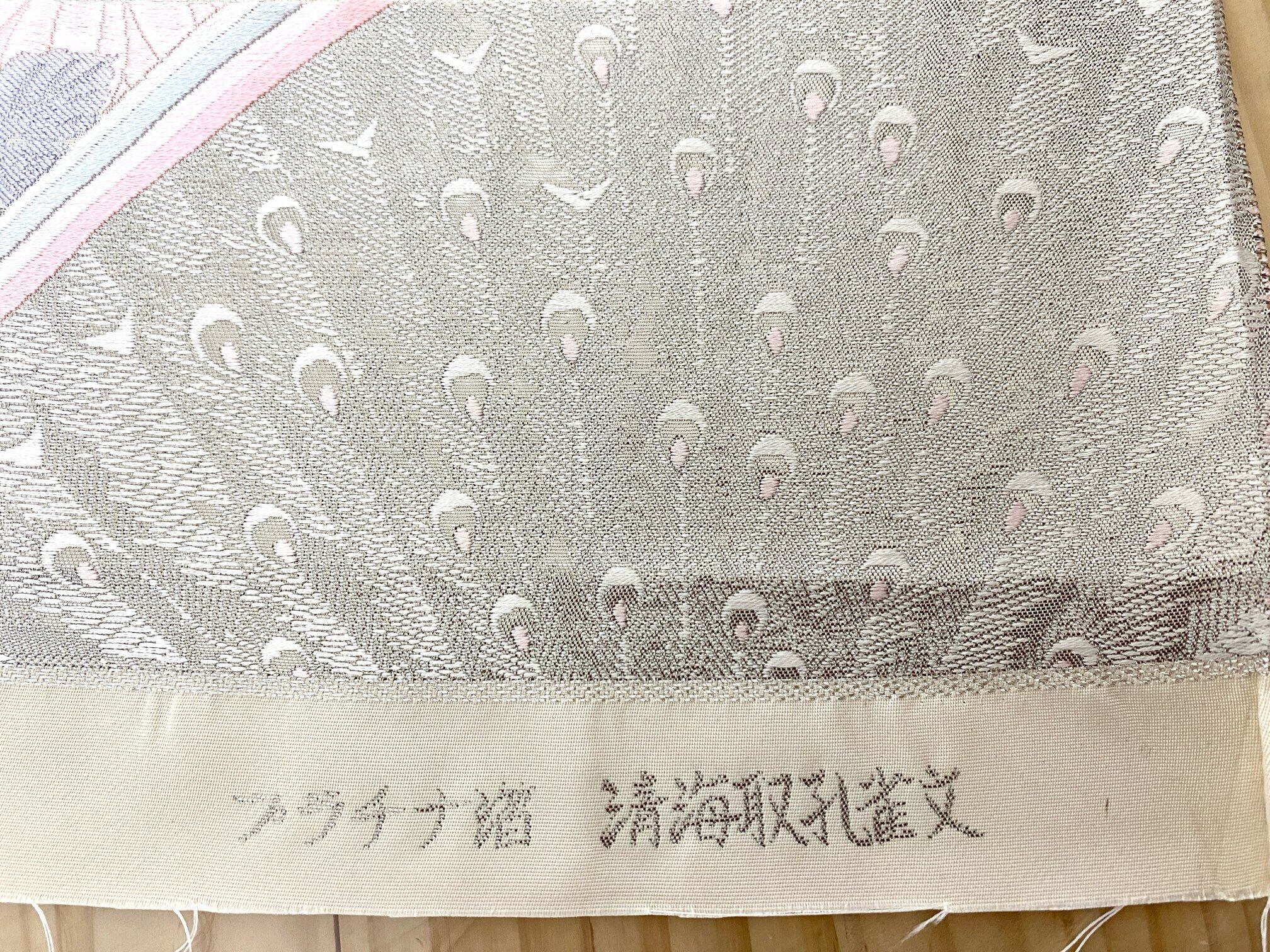 触り心地が滑らかで手にしっくりとくる安心感。絵柄の鮮やかさは日本の帯ならではの存在感で素晴らしく華やかな美しさです。
