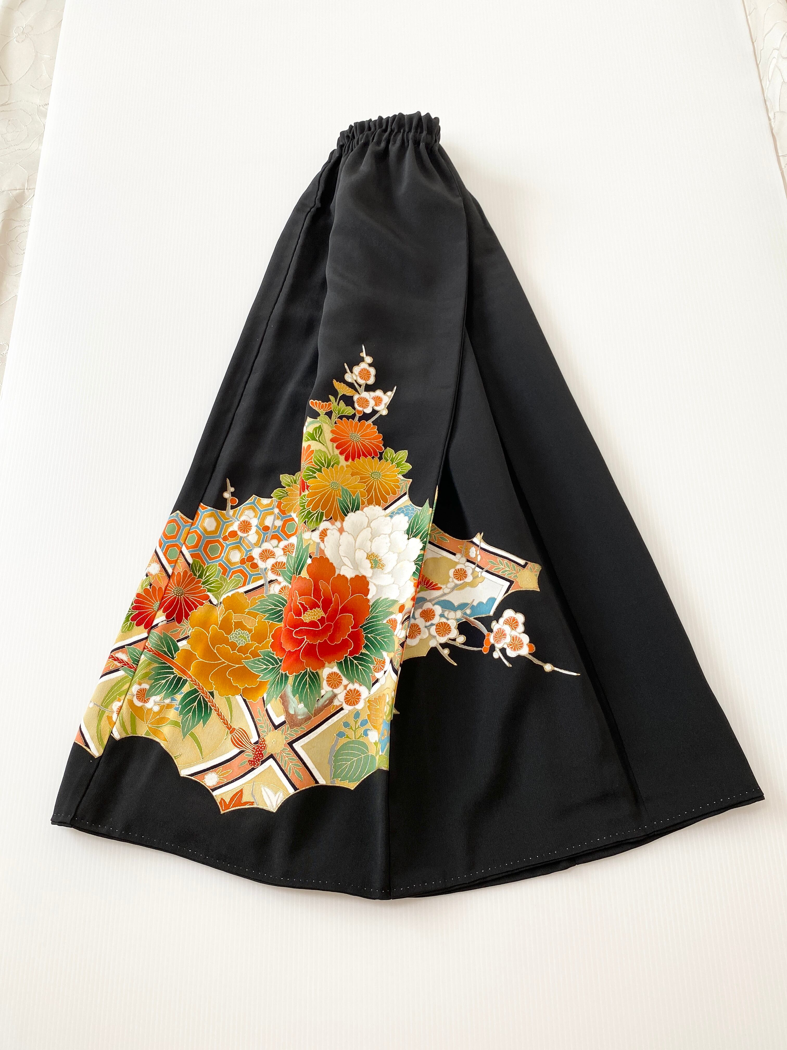黒留袖着物リメイクウエストゴムロングスカートフリーサイズ