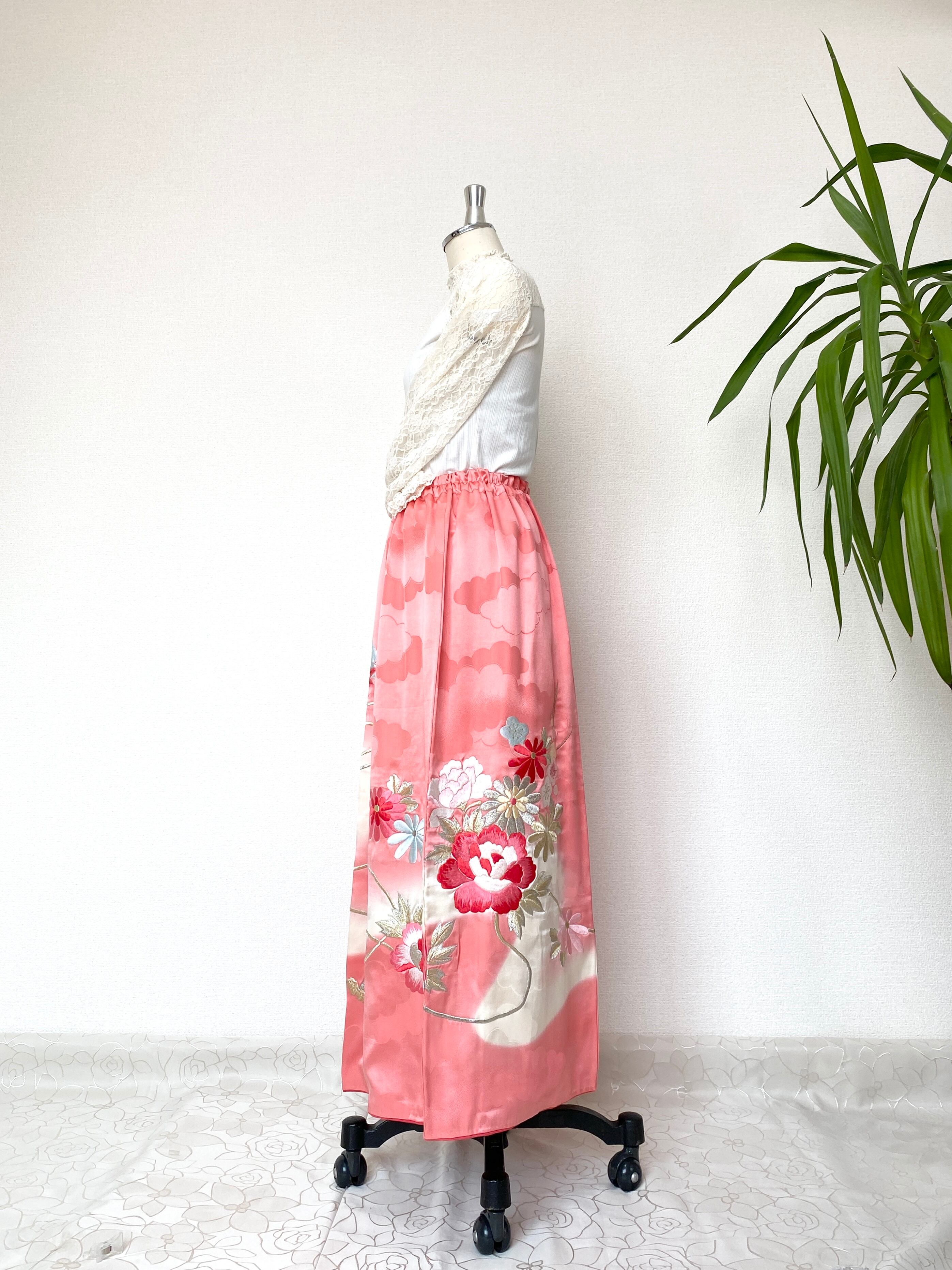 着物リメイクウエストゴムロングスカートフリーサイズ