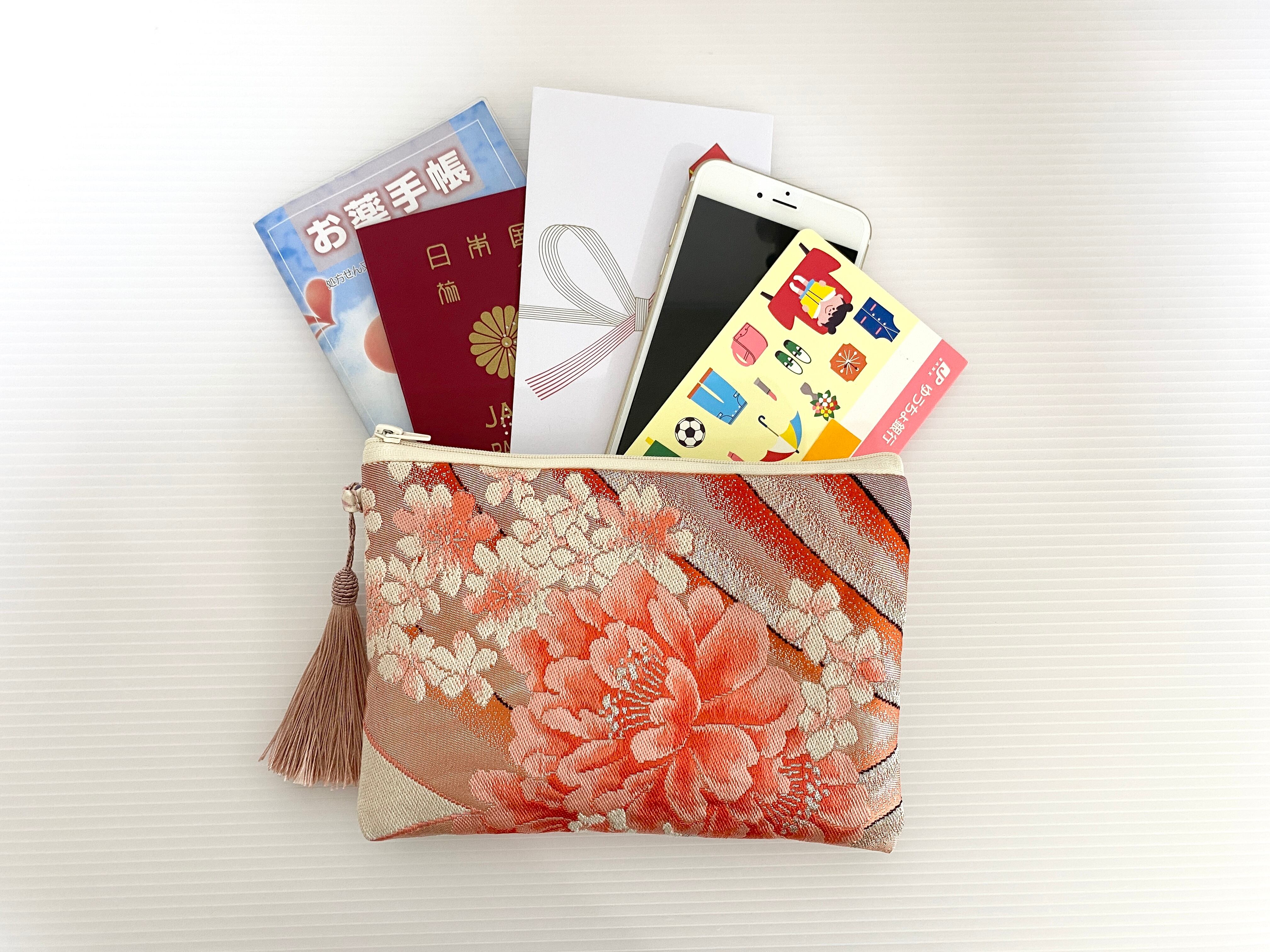 帯リメイクポーチ化粧ポーチ【マチ無し】御朱印帳入れパスポート入れ通帳入れお薬手帳入れマルチポーチマルチケースコスメポーチNO.2031