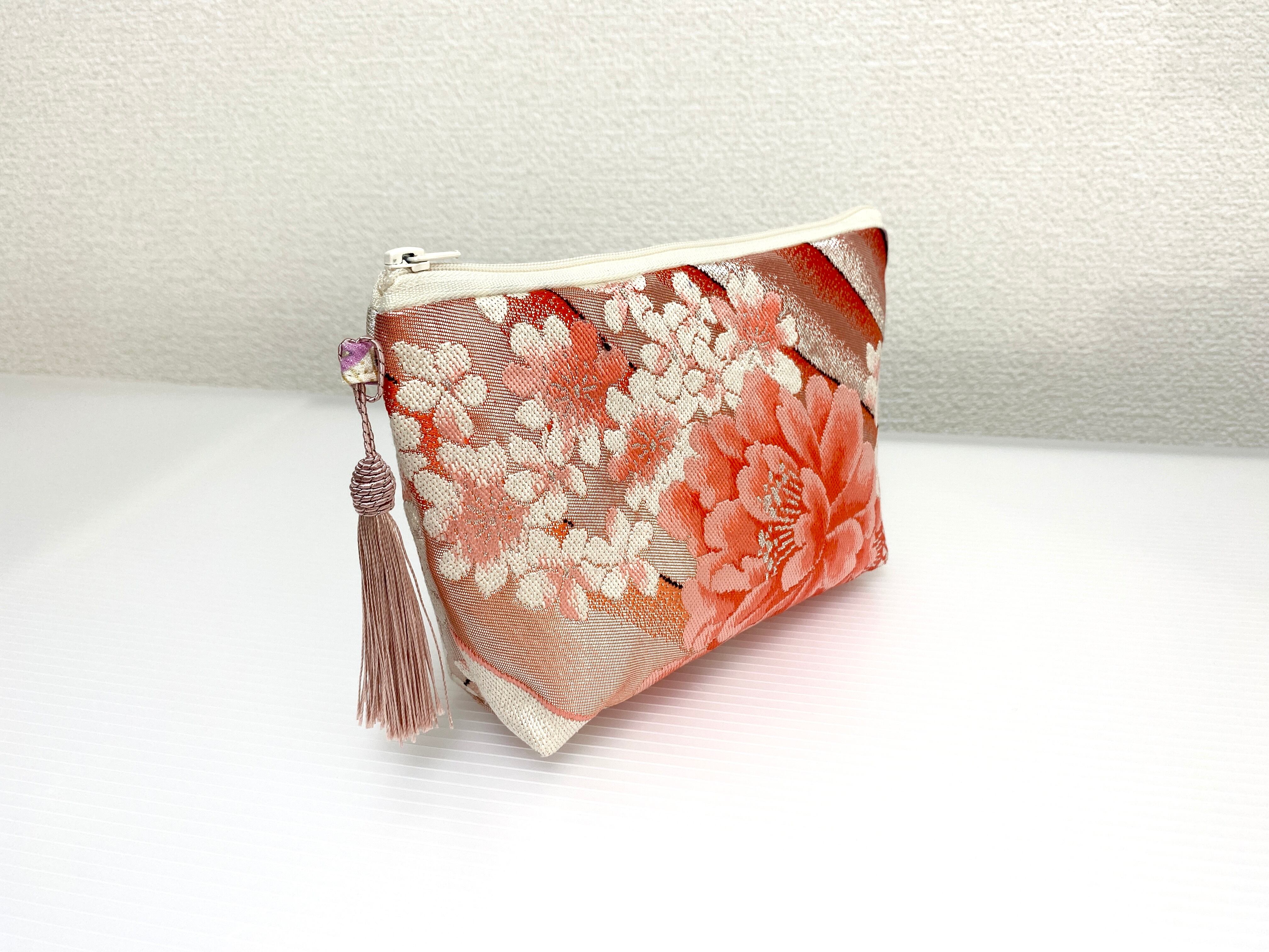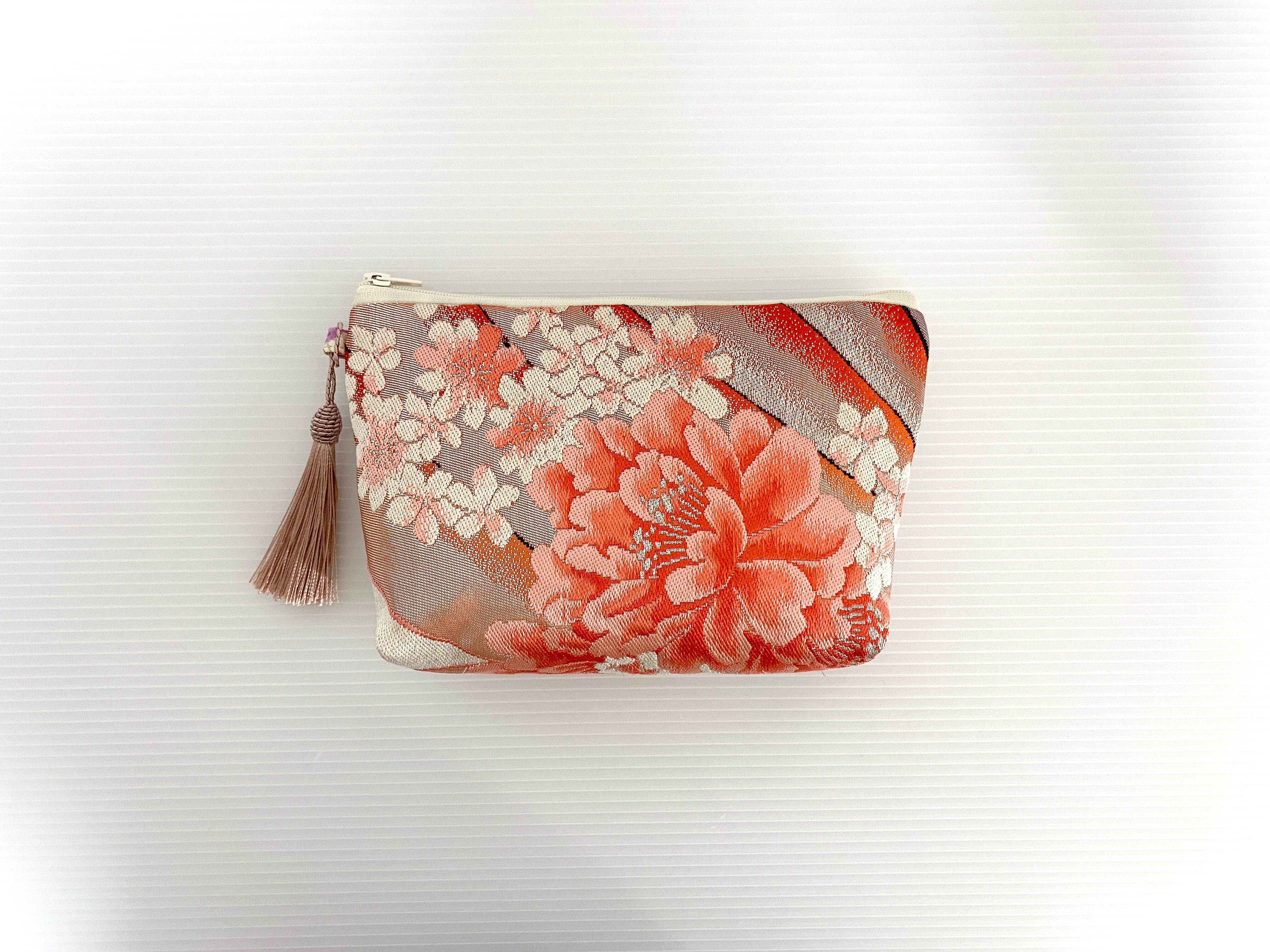 日本の古帯をリメイクして作製したポーチでハンドメイド品です。