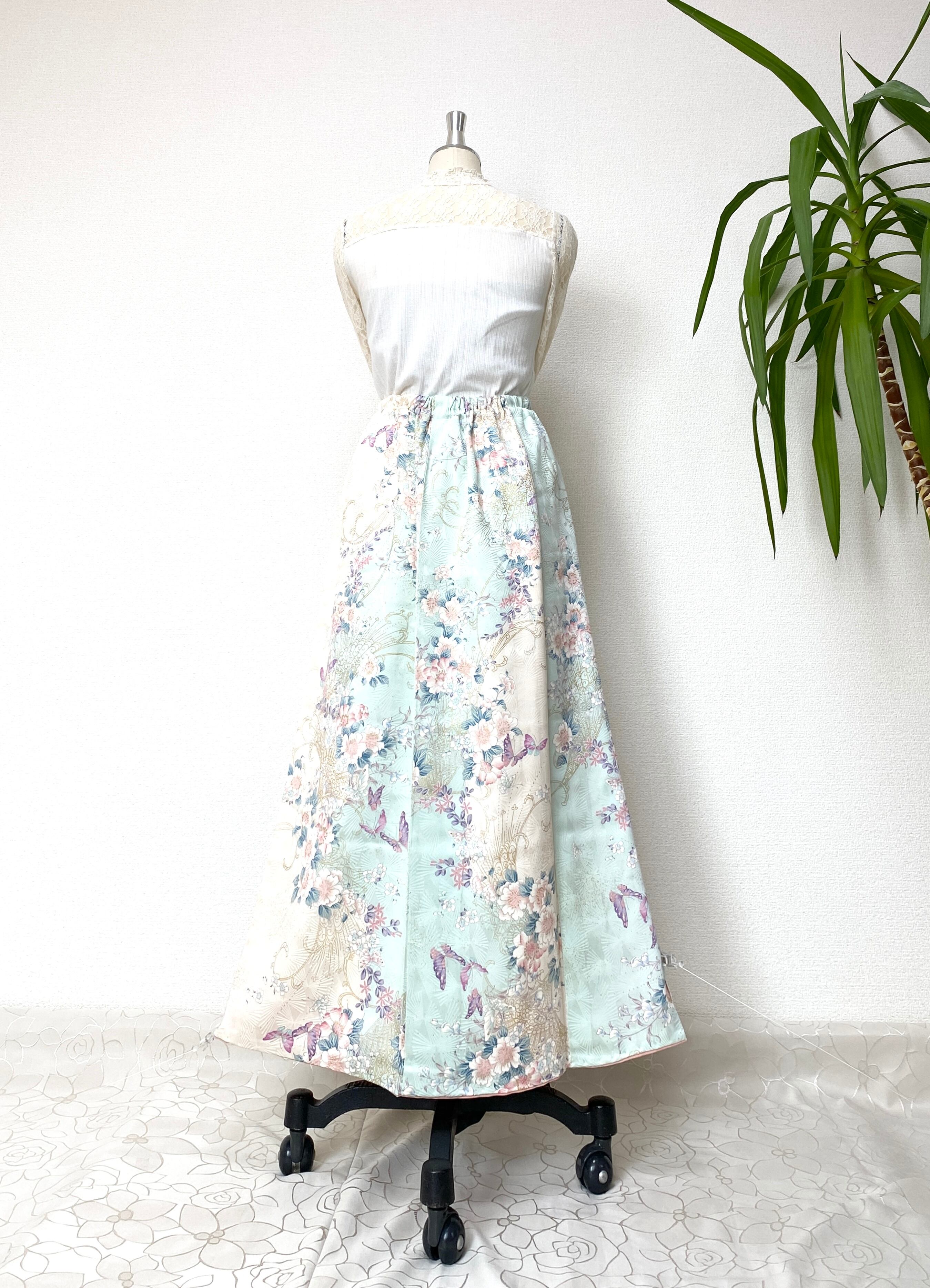 着物リメイクウエストゴムロングスカートフリーサイズ
