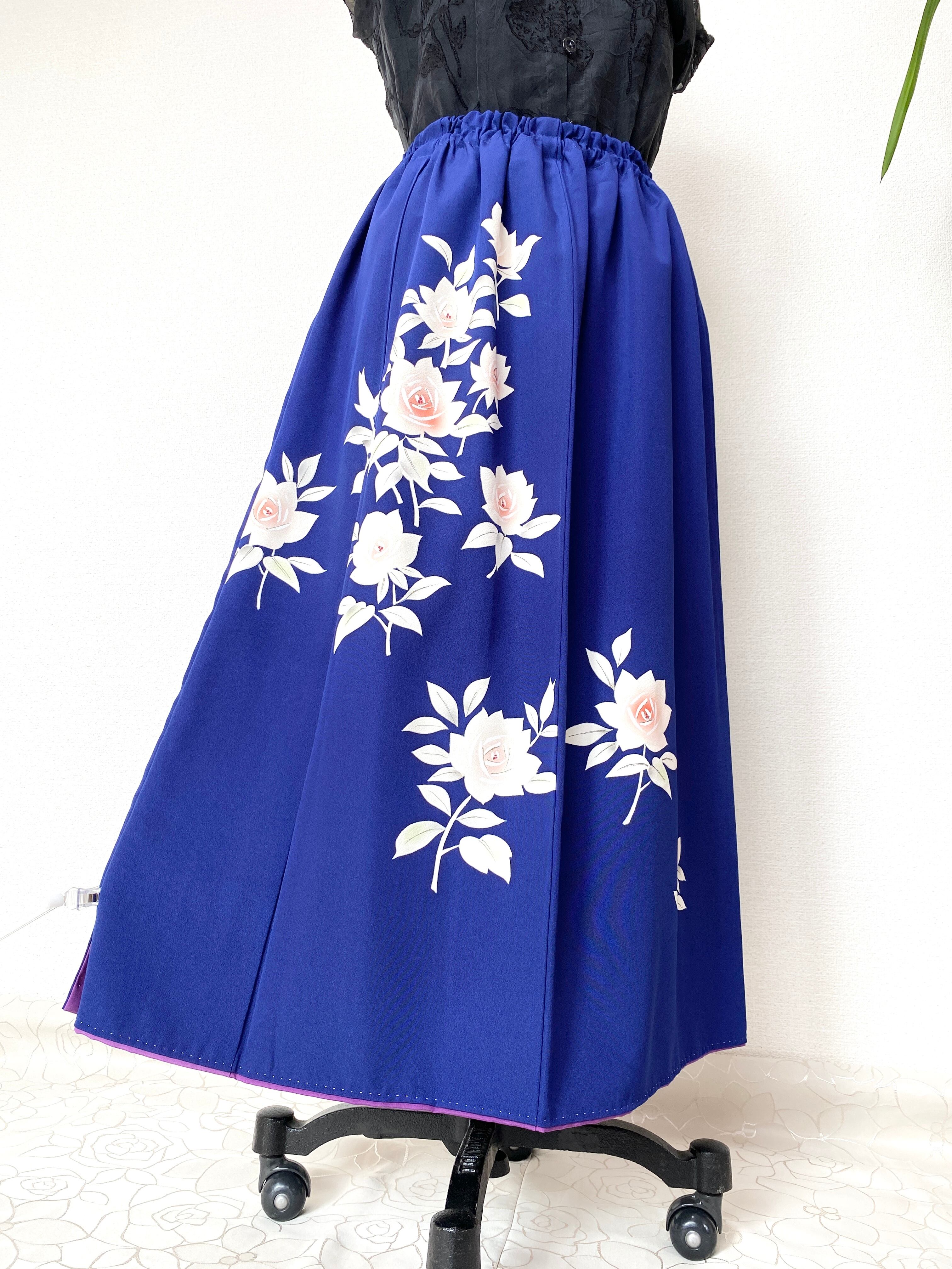 大人可愛いスカート着物リメイクウエストゴムロングスカートフリーサイズ