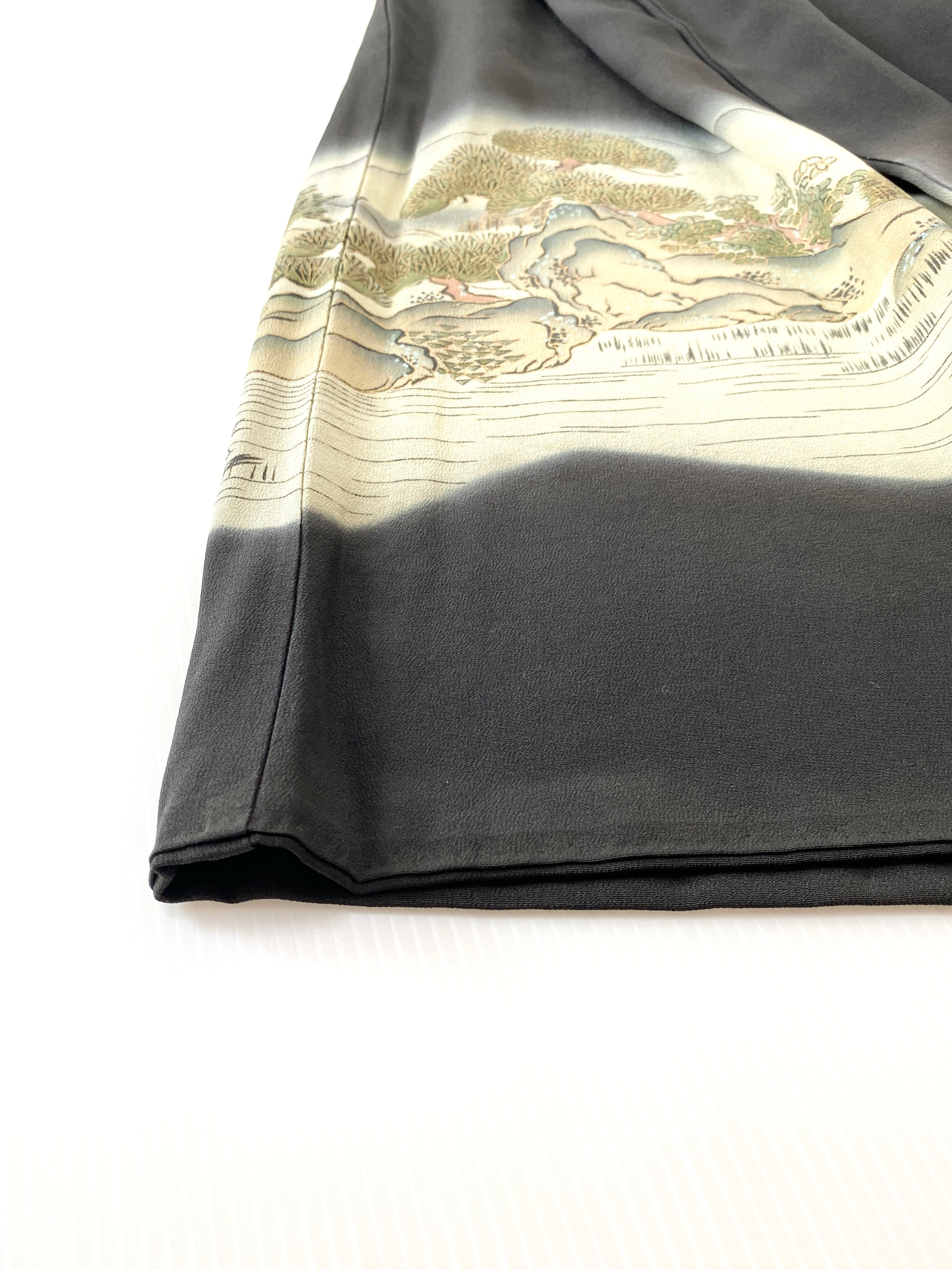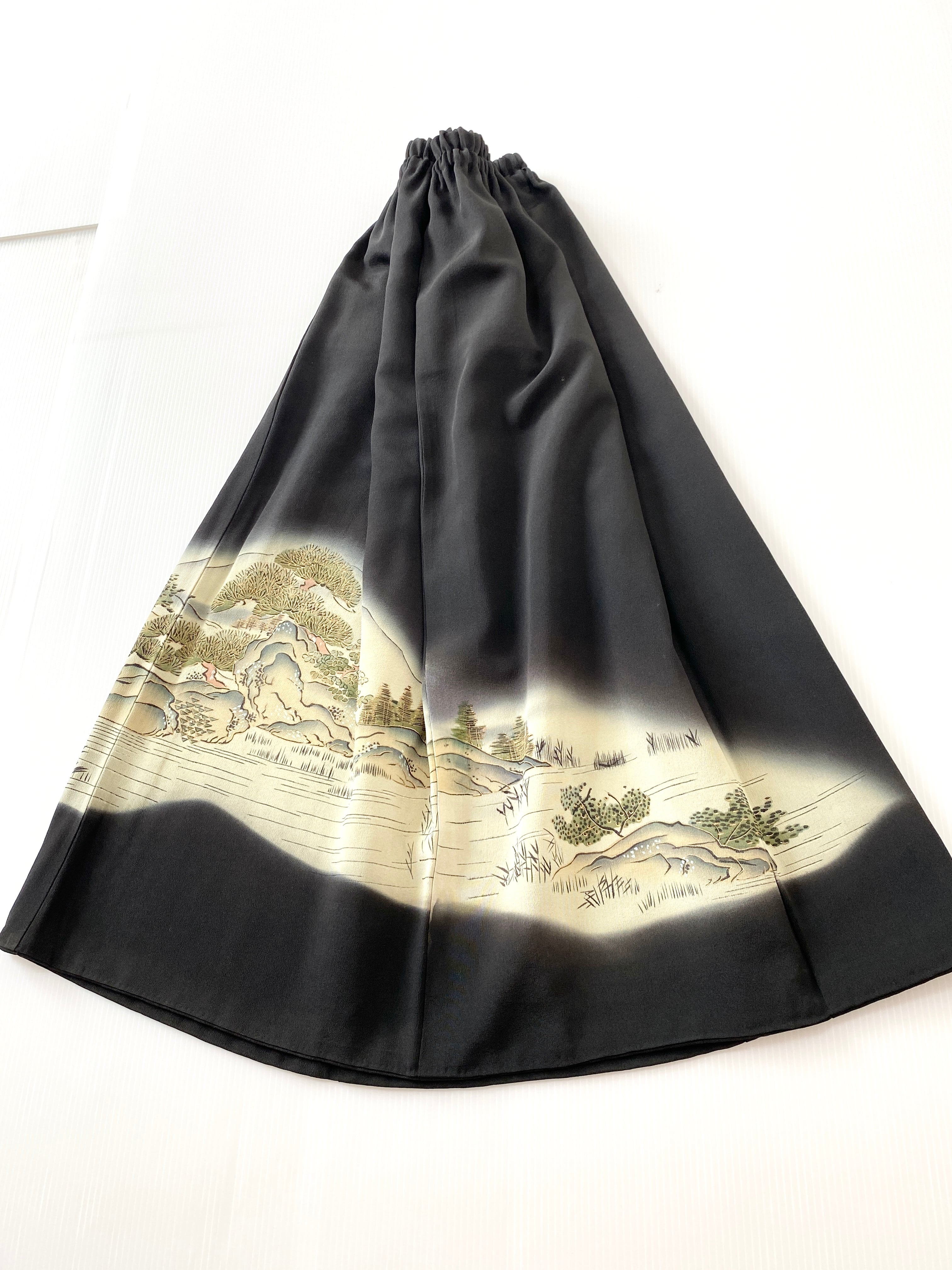 大人可愛いセレブ着物スカートフリーサイズ黒留袖着物リメイクウエストゴムロングスカート