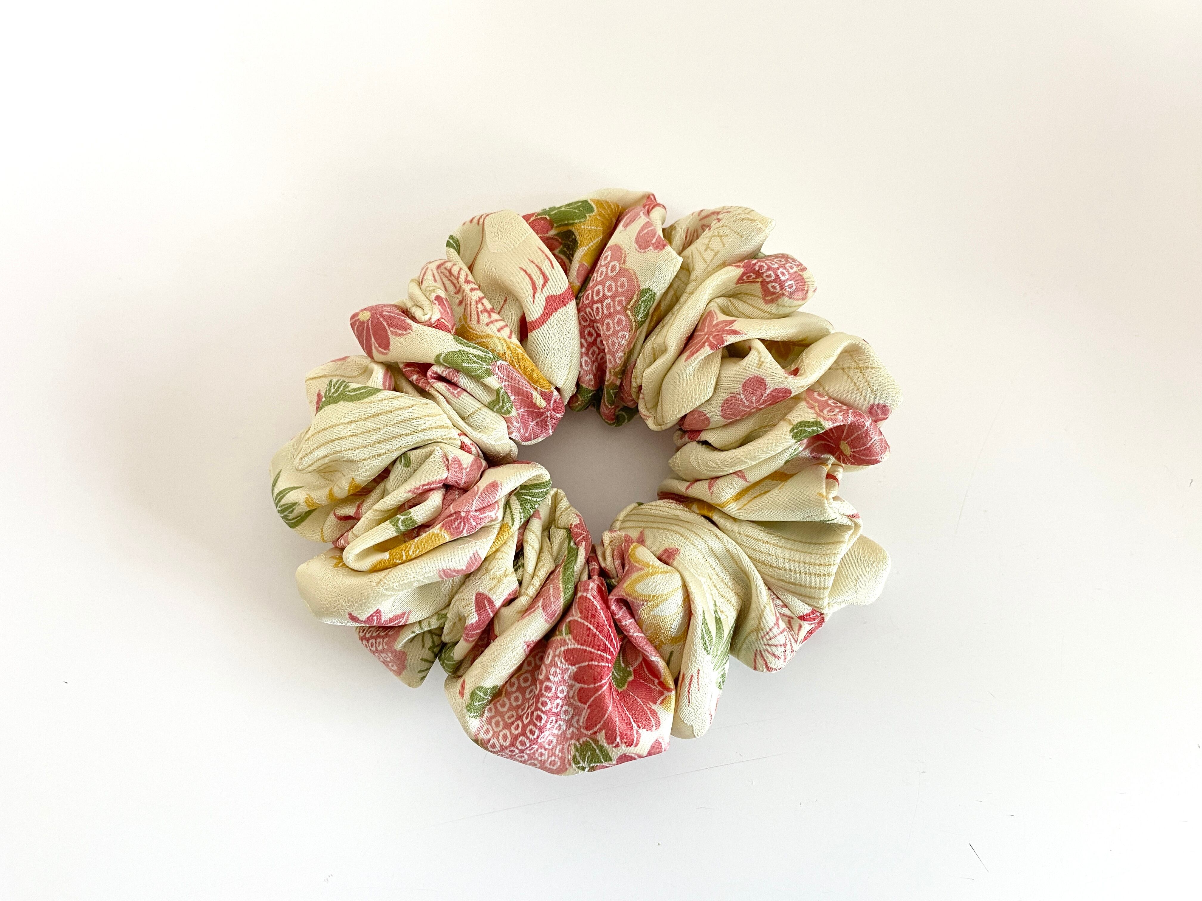 着物布生地なので柔らかで薄い布生地な為触り心地が良く滑らかで髪結びの装着がとても良いシュシュヘアゴムです。