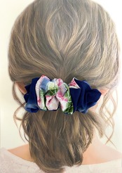 *シュシュは直径約14㎝ 髪を後ろで一つ結びをするとシュシュは2回まわせる感じで使用できます。