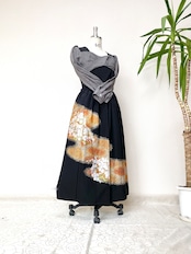 黒留袖着物をリメイクして作製したウエストゴムロングドレススカートフリーサイズです